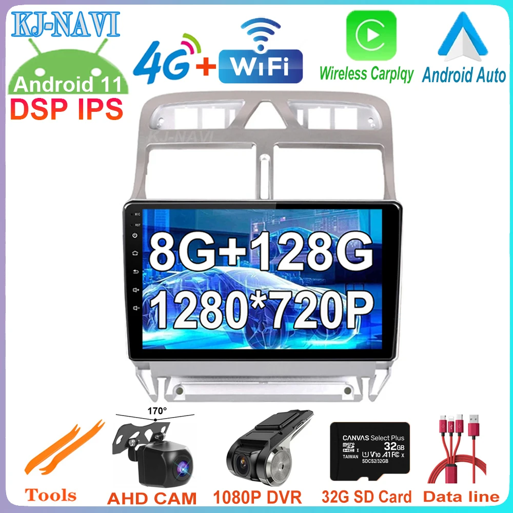 Android 11 CARPLAY 6 + 128 ГБ DSP для PEUGEOT 307 sw 307 2002 - 201...