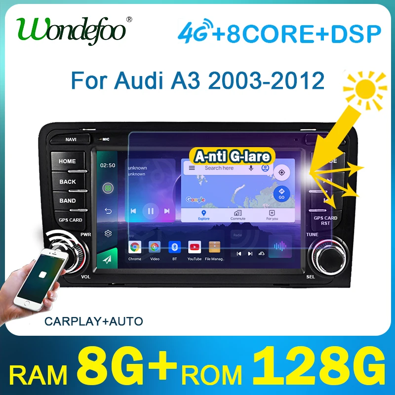 магнитола 2дин андройд 2 din android 10 с экраном автомагнитола стерео Аудио для авто для Audi A3 8P S3 RS3 Sportback 2003-2012 Carplay, интеллектуальные системы видеоплееров DSP Мультимедиа блютуз магнитофон в машину