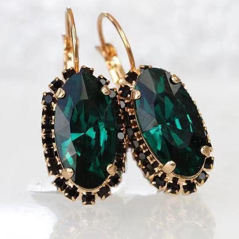 Модные Зеленые овальные геометрические висячие серьги с кристаллами инкрустированные черными Стразы цирконием для женщин ювелирные изделия вечерние ринки свадьбы