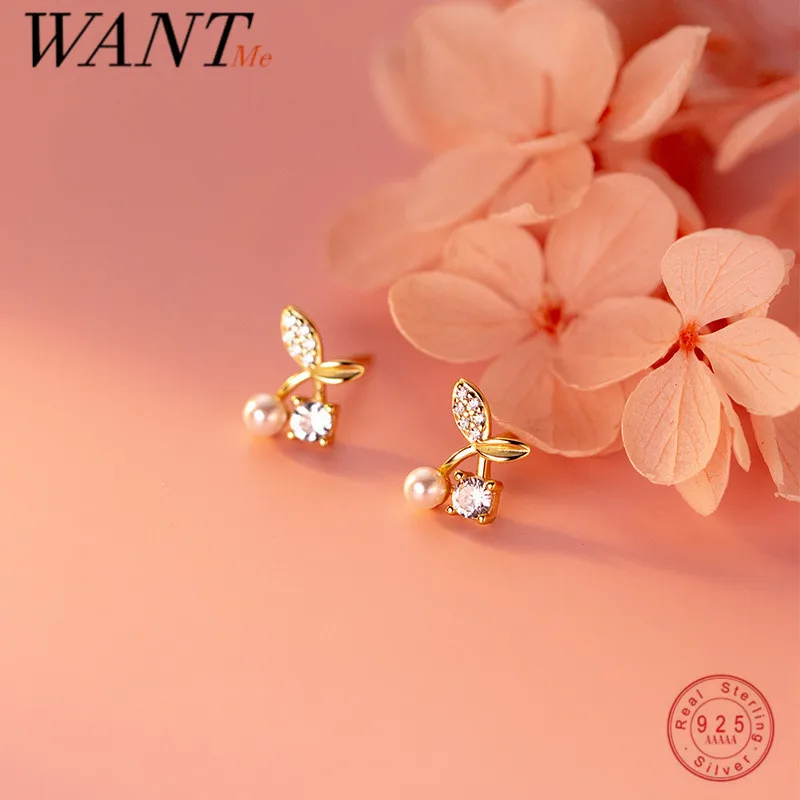 Женские серьги-гвоздики WANTME из стерлингового серебра 925 пробы с фруктами и жемчугом вишни