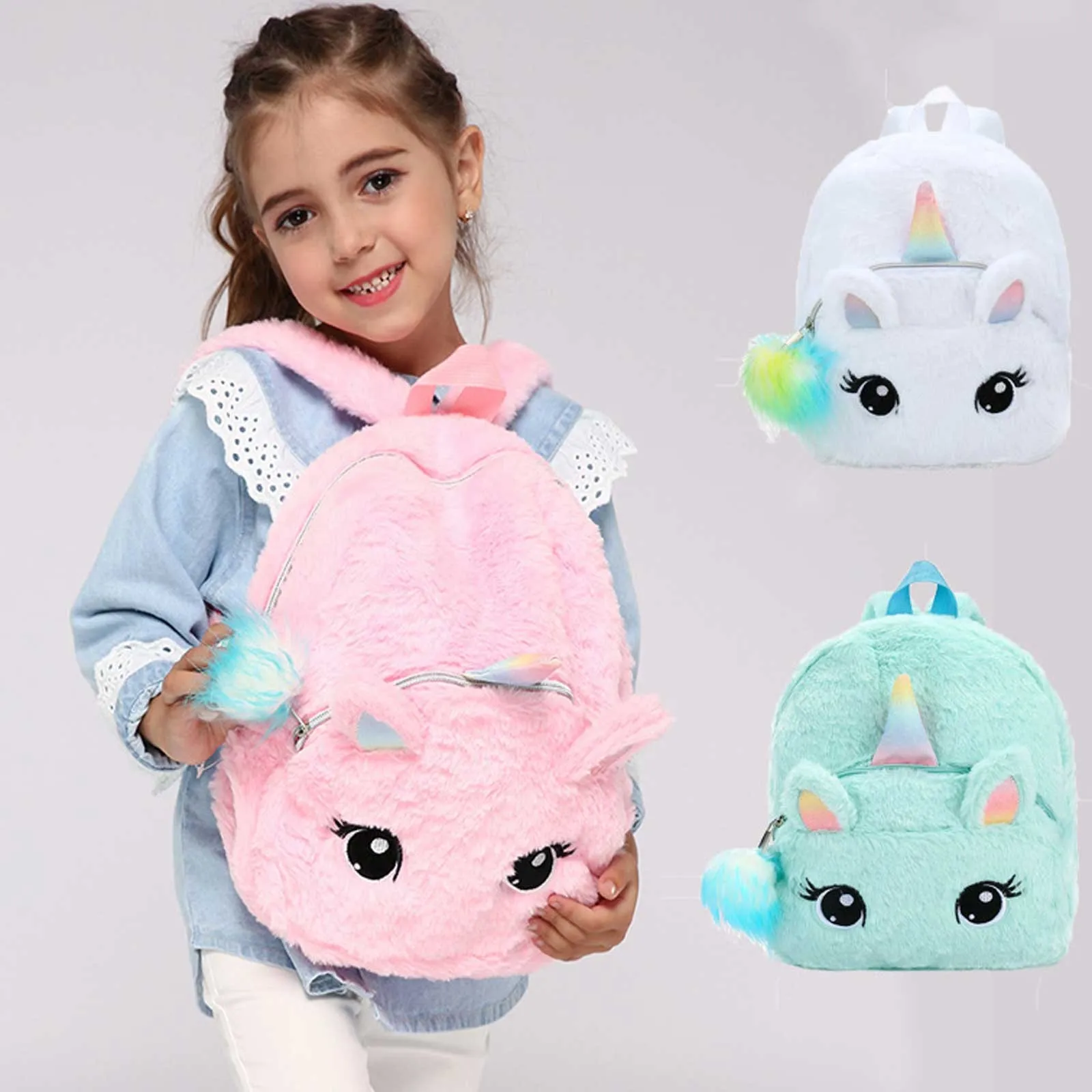 Милый мультяшный рюкзак для девочек, плюшевые Мультяшные рюкзаки с животными, милые модные меховые рюкзаки, детский школьный портфель, Детская Подарочная сумка для книг # g3