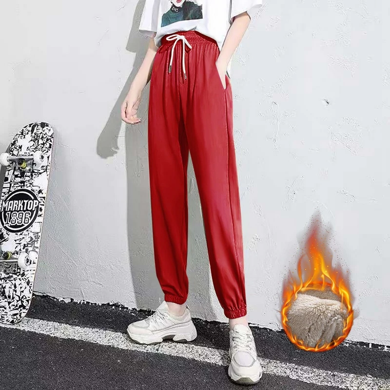 Женские спортивные брюки на шнуровке, утолщенные теплые спортивные ...