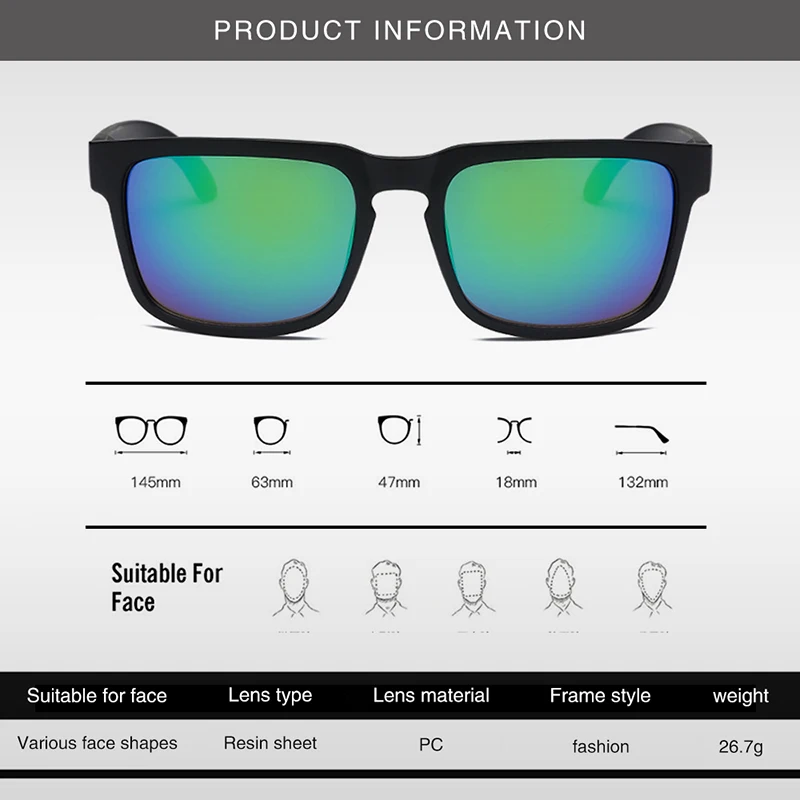 Название: мужские цветные светоотражающие солнцезащитные очки для езды на велосипеде Цвет: черная оправа серые линзы, черная оправа синие линзы, черная оправа Красные линзы Материал оправы: пластик Степень защиты от УФ-излучения: UV400 Материал линз: поликарбонат Поляризованный светильник: нет Подходит для езды Посылка включает в себя: 1 * солнцезащитные очки