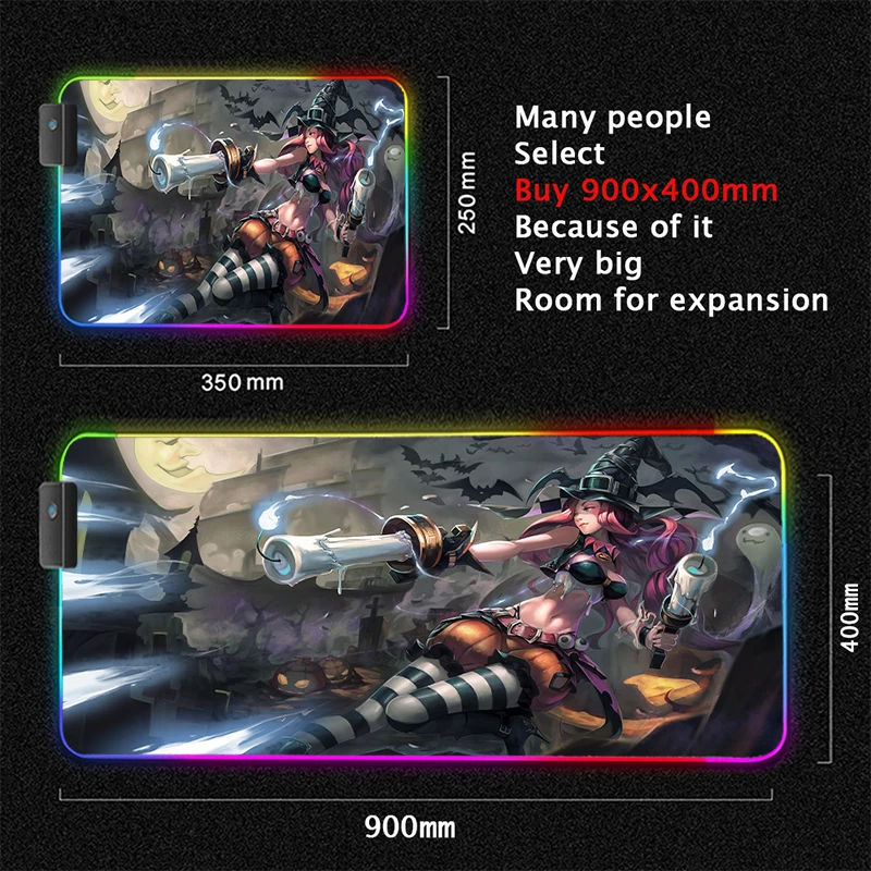 Большой коврик для мыши со светодиодной подсветкой, в стиле аниме
