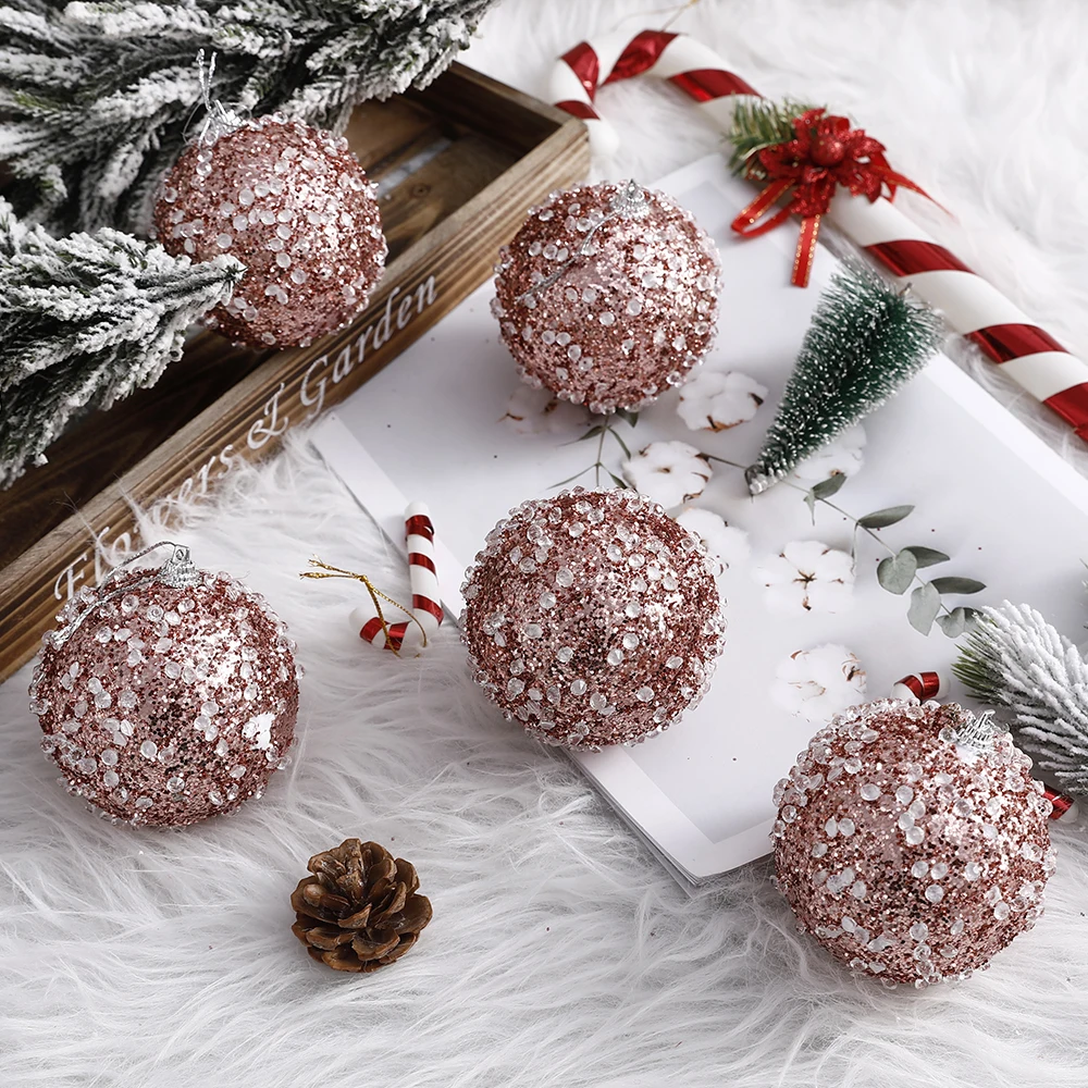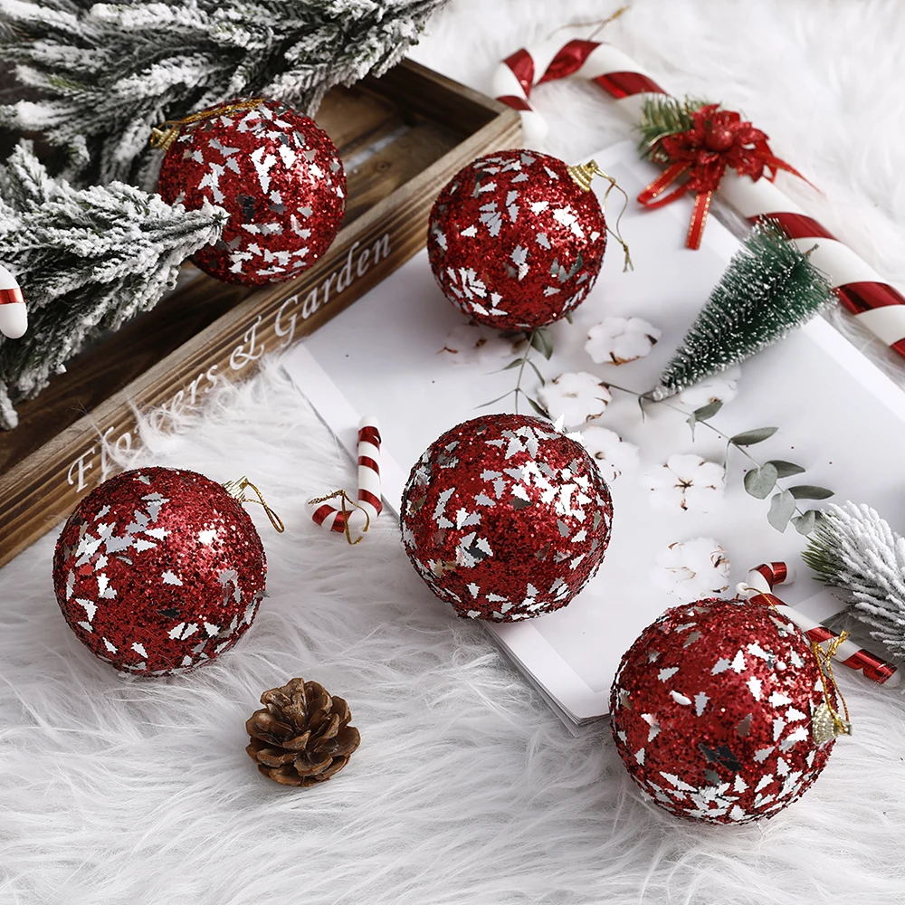 5 шт., 8 см, рождественские Висячие шары, Рождественская елка, новогодние вечерние украшения, пенопластовые блестящие уникальные сказочные украшения, праздничные наряды