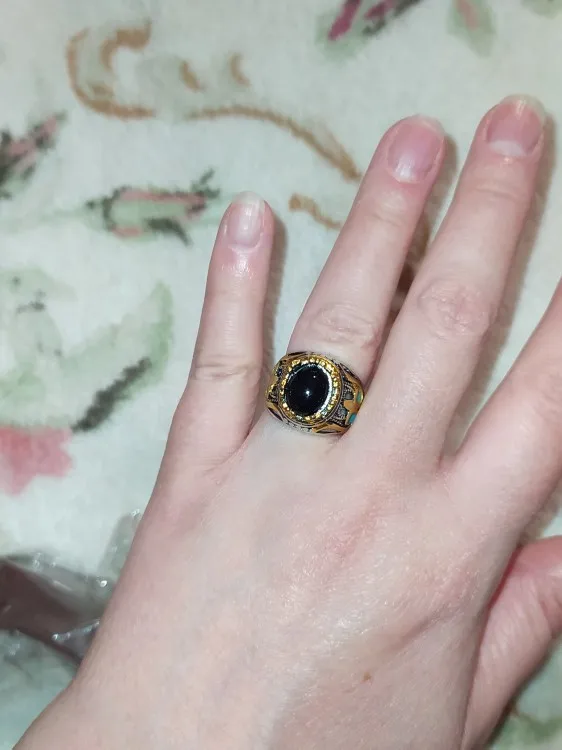 КОЛЬЦО В ТУРЕЦКОМ СТИЛЕ ДЛЯ БОЙФРЕНДА Наконец-то, предоставился шанс поближе познакомиться с турецким ювелирным стилем. Кольцо очень интересное по дизайну, рельефные узоры по металлу выполнены очень филигранно, а светлый камень придаёт этому украшению благородный вид. Продавец честный и ответственный, хорошо упаковал заказ и вовремя отправил его. FDLK OFFFICIAL STORE - хороший магазин с богатым ассортиментом украшений как для женщин, так и для мужчин, рекомендую. Доставка 53 дня ⭐⭐⭐⭐⭐