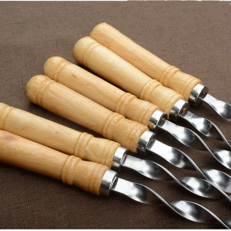 Шампуры для барбекю, плоские, из нержавеющей стали, с деревянной ру...
