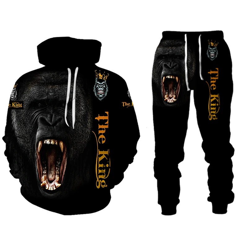 Толстовка с капюшоном и 3D-принтом, комплект, уличная мода, спортивные штаны, спортивные штаны, из двух предметов, куртка оверсайз, топы, одежда