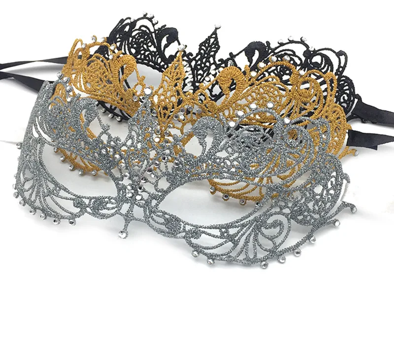Вечерняя маска, золотистая, серебристая, кружевная