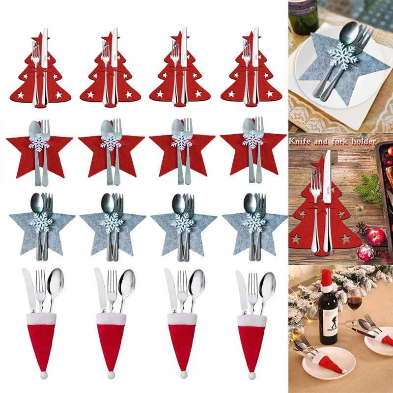 4 шт. рождественские украшения, держатель для кухонной посуды, сумк...