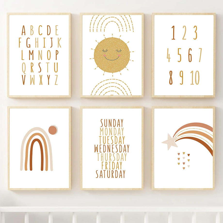 Мультяшное солнце радуга звезда цифры Алфавит цитаты настенная живопись на холсте скандинавские плакаты и принты настенные картины декор детской комнаты