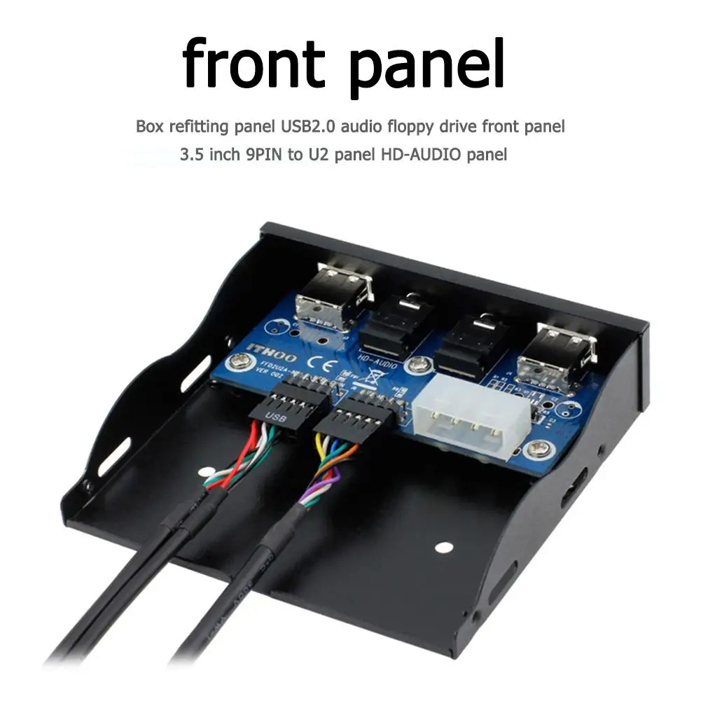 3,5 дюймов 9Pin с 2 портами USB 2.0 Порты и разъёмы концентратор Floppy Bay HD Audio 3,5 мм разъем для наушников расширения спереди Панель стеллаж для выставки товаров для компьютера ПК со звуковым кабелем 9PIN-9PIN