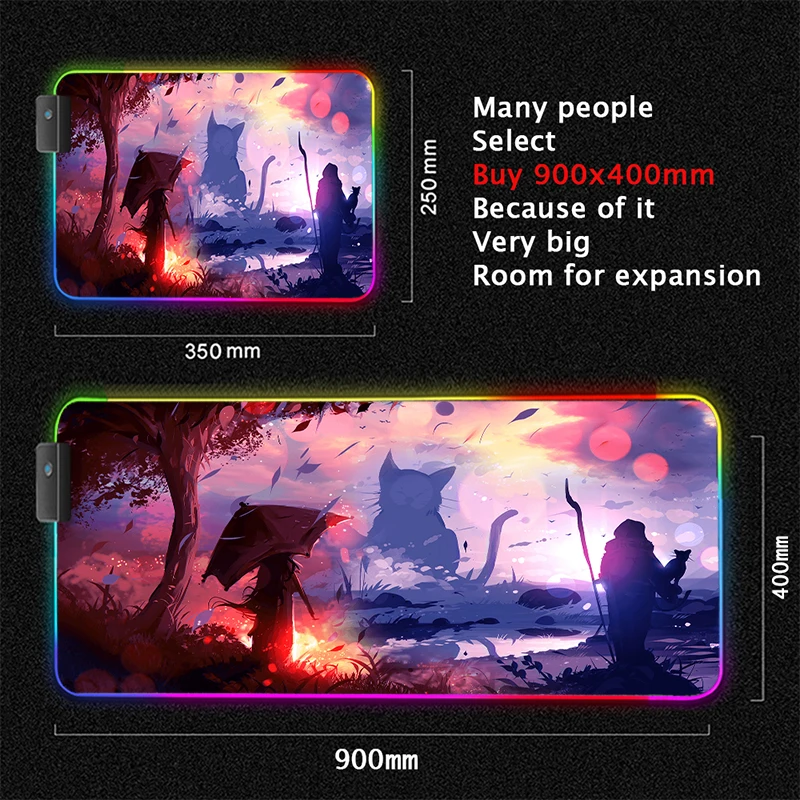 Большой коврик для мыши со светодиодной подсветкой, в стиле аниме
