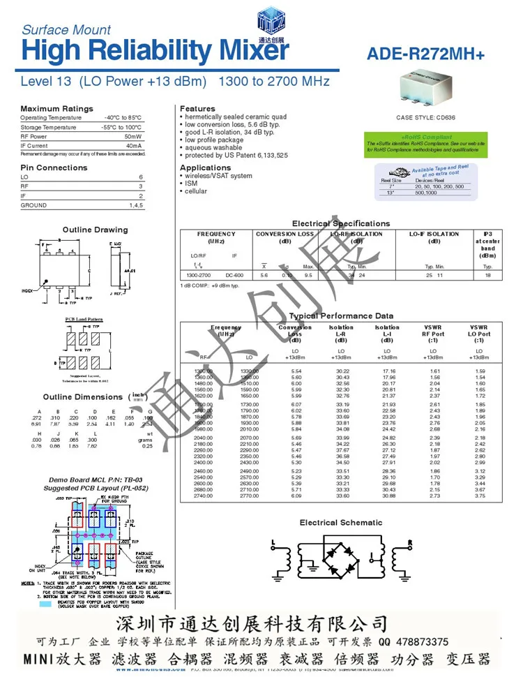 Высоконадежный миксер Ade-r272mh 1pcs 1300-2700mhz Mini, новый оригинальный