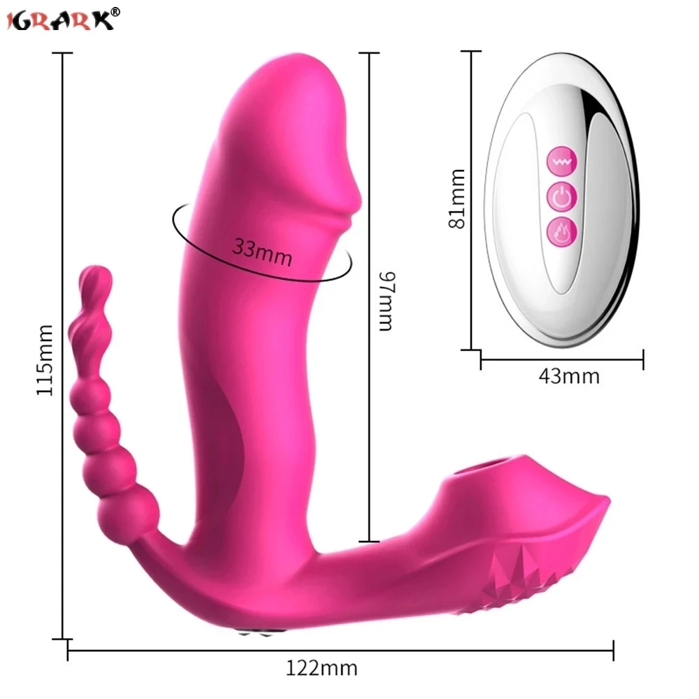 Беспроводные трусики 3 в 1, сосающий вибратор, носимый Стимулятор точки G, клитора, нагрев, вагинальный, анальный оргазм, фаллоимитатор