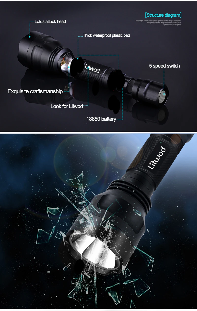 · Цвет: черныйВремя работы: 2-4 часа· Вход Напряжение: 3,6-4,2· Яркость: 3800 люменов· Материал: алюминиевый сплав· Расположение переключателя: Хвостовая крышка· Тип переключателя: Clicky/Clickie· Светодиодный чип на плате) Срок службы: 100000 часов· Максимальное расстояние освещения: 200 м· 5 Режимы: яркий/средний/тусклый/стробоскопический/тревога (красный и зеленый цвет светильник вспышки светильник 1 режим)· Конфигурация батареи: 1 перезаряжаемая литиевая батарея 18650Водонепроницаемость: IP66 (под водой 1 м, использование в дождливый день, нельзя нырять)