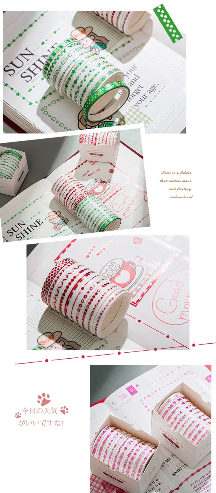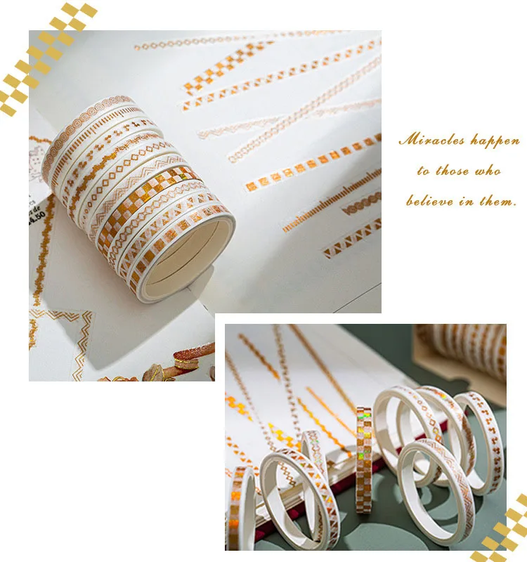 10 рулонов/коробка Золотая фольга васи лента Kawaii маскирующая лента декоративная клейкая лента наклейка Скрапбукинг этикетка дневник Сделай Сам Канцтовары