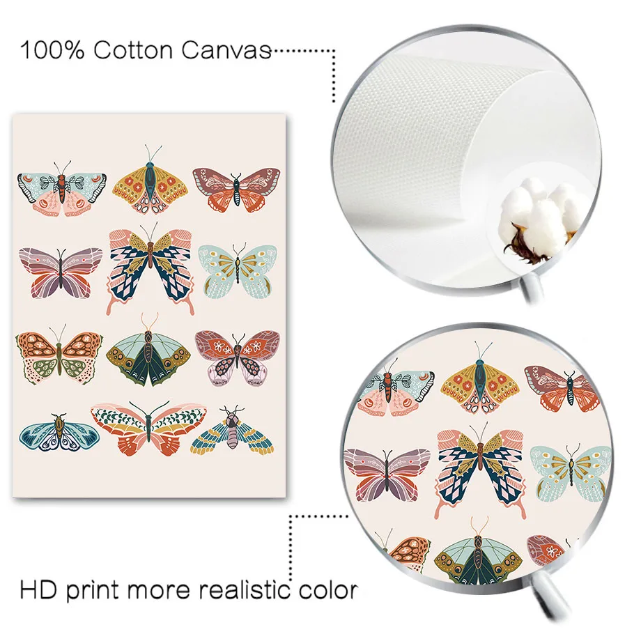 Абстрактные линии бабочка цветок женщина настенная Картина на холст...