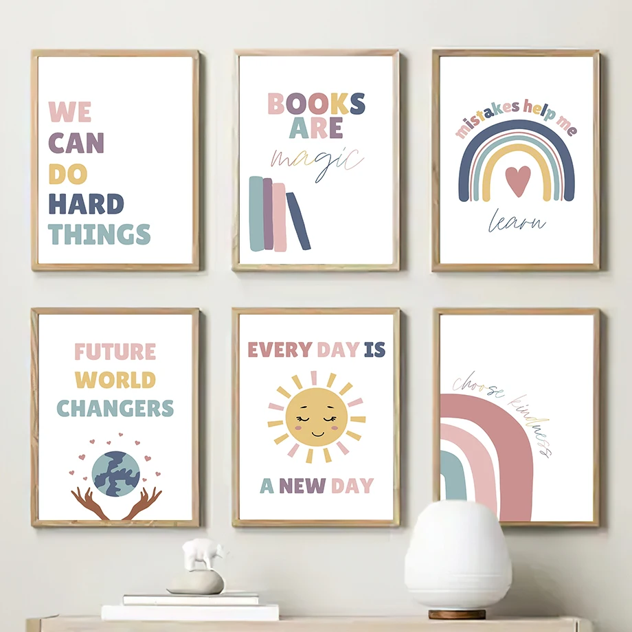 Милые Мультяшные солнце Радуга растущие цитаты настенная Картина на холсте скандинавские постеры и принты Искусство Декор детской комнаты