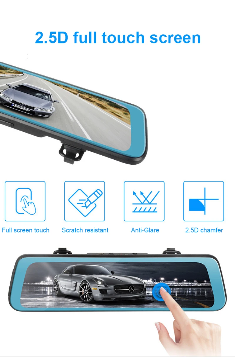 Зеркало-видеорегистратор, 10 дюймов, 2,5 K, сенсорный экран