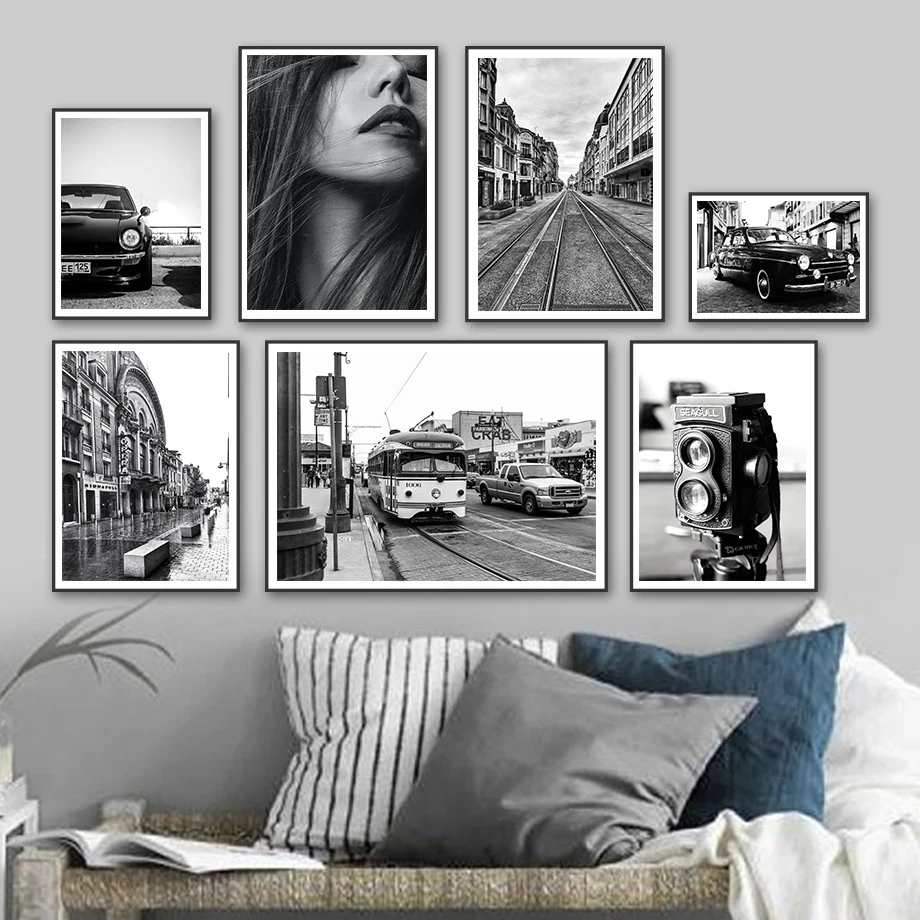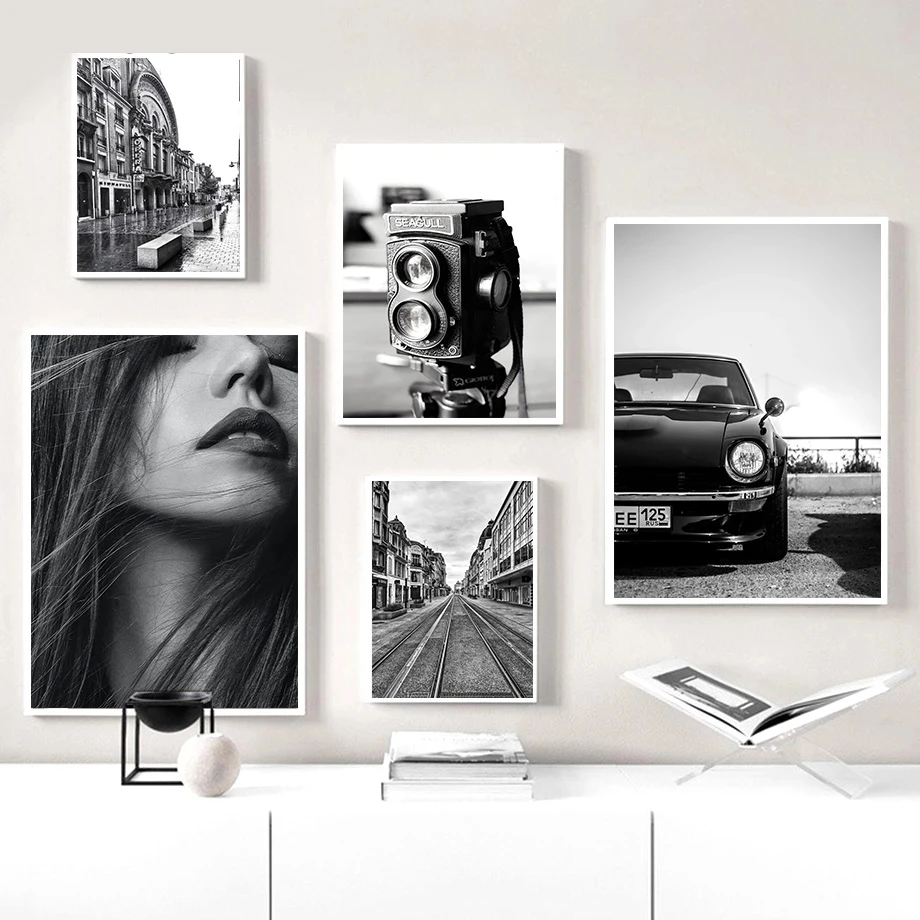 Винтажная камера автомобиль женщина черная Белая настенная Картина на холсте скандинавские постеры и принты настенные картины для гостиной домашний декор