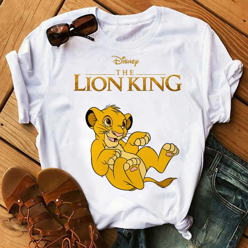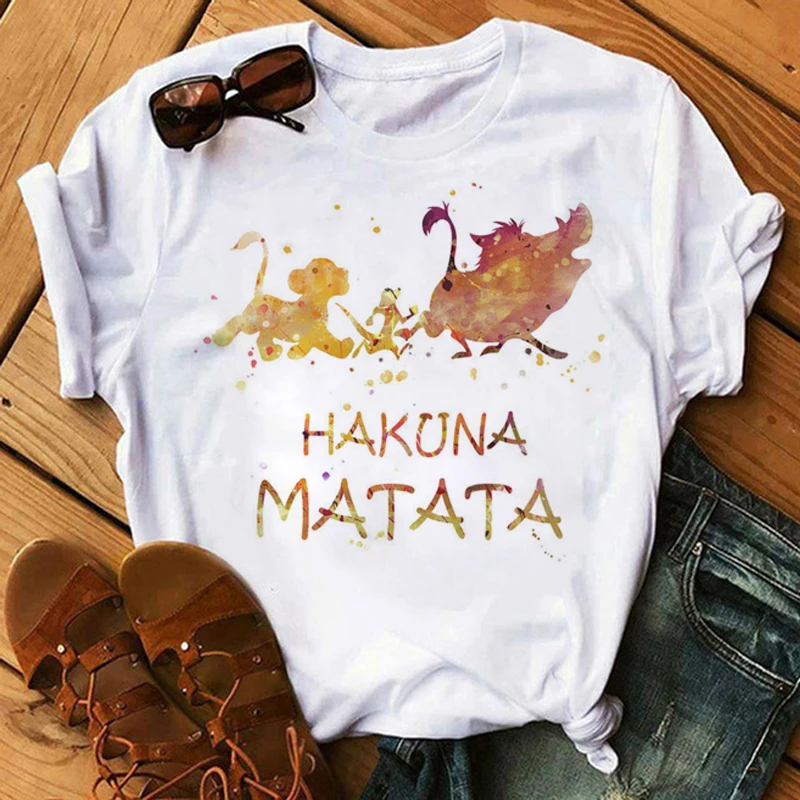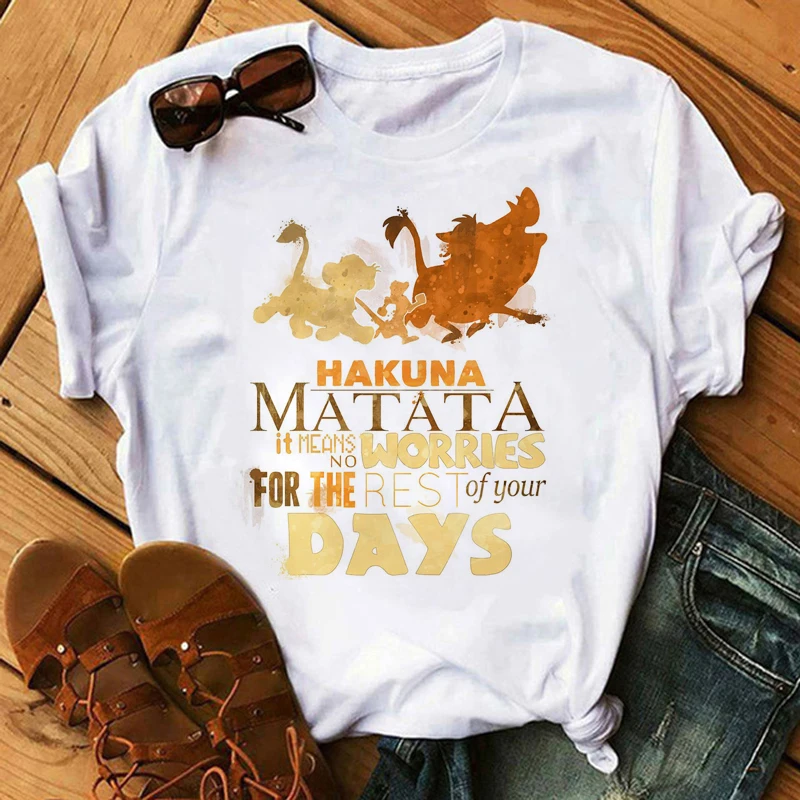 Футболка женская с принтом Hakuna Matata, модная мультяшная одежда с коротким рукавом и рисунком мультяшного льва, короля