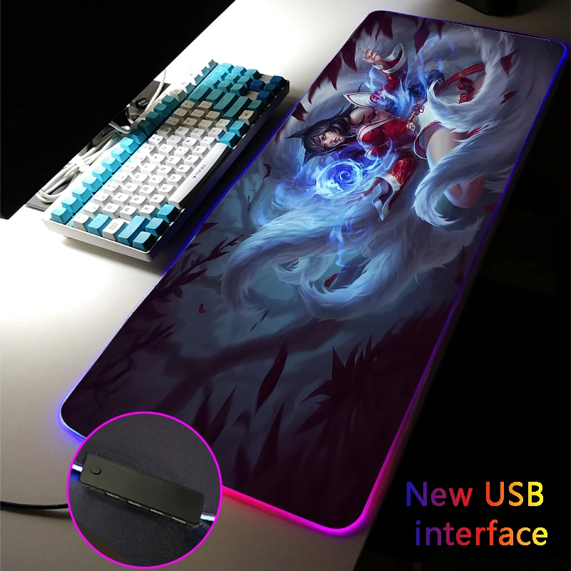 Большой коврик для мыши со светодиодной подсветкой, в стиле аниме