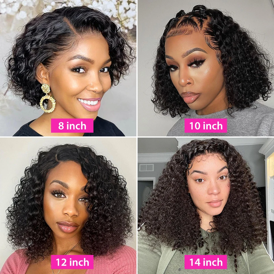 Кудрявые 13x 4 парик фронта шнурка короткий Боб фронтальные человеческие волосы парики для черных женщин глубокая волна бразильские Remy 4x4 закрытие фронтальные парики