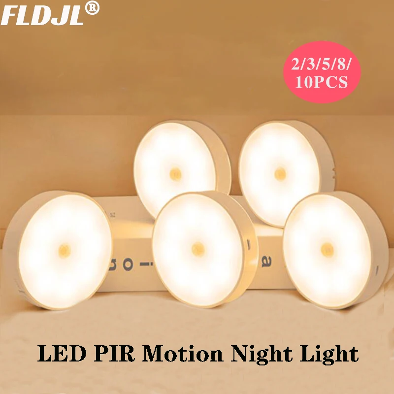 Светодиодный ночсветильник с пассивным инфракрасным датчиком движения и зарядкой по USB, 8 ламсветильник, для шкафа, чулана, настенная лампа для дома, кухни, спальни, коридора