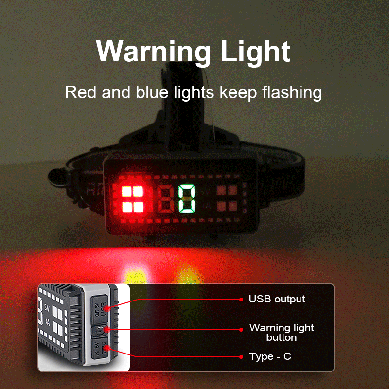 XHP199 параметры♥Бренд: Paweinuo♥Преимущество: цифровой дисплей питания хвоста, красный и синий предупреждающие огни.♥Светодиодный Бисер: XHP199♥Аккумулятор: аккумулятор 18650♥Время освещения: 8-12 часов♥Режим масштабирования: телескопический зум♥Водонепроницаемость: IPX6♥Цвет корпуса: черный♥Диапазон: 1500 метров♥Метод зарядки: Type-c♥Характеристики: внешний аккумулятор♥Шестерня XHP199 4-я передача: низкий светильник + сильный светильник + стробоскоп + SOS♥Светодиодный 1: красный и синий попеременно мигает♥Способ зарядки: micro USB зарядка