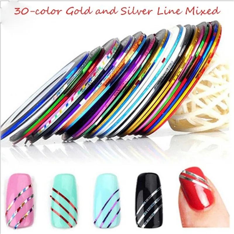 30 рулонов разноцветных полос ленты для DIY 3D ногтей украшения из ...