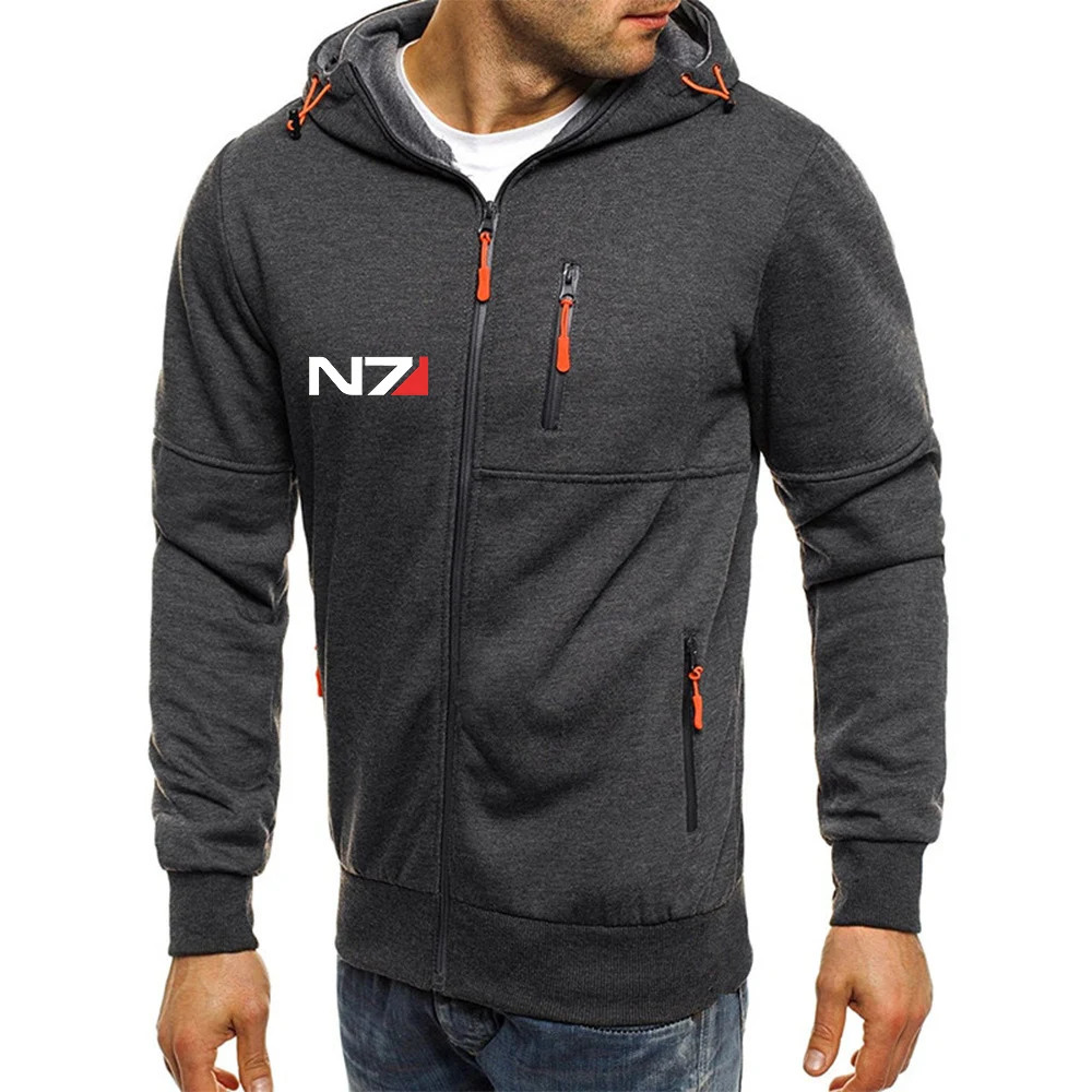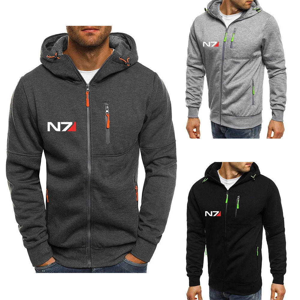 2021 Mass Effect N7 Мужская Спортивная повседневная одежда, флисовая куртка на молнии, осенняя толстовка, осеннее пальто, кардиган с капюшоном