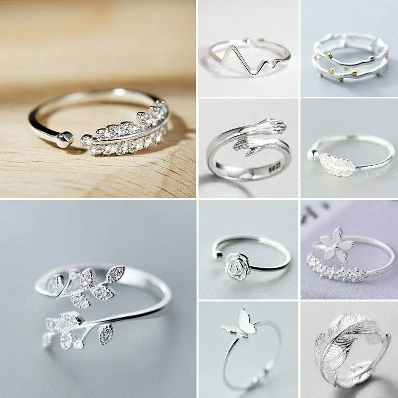 Huitan Изящные Открытые Кольца для женщин Серебряный Цвет Бабочка лист цветок перо кольцо на палец обручальные кольца новые модные ювелирные изделия