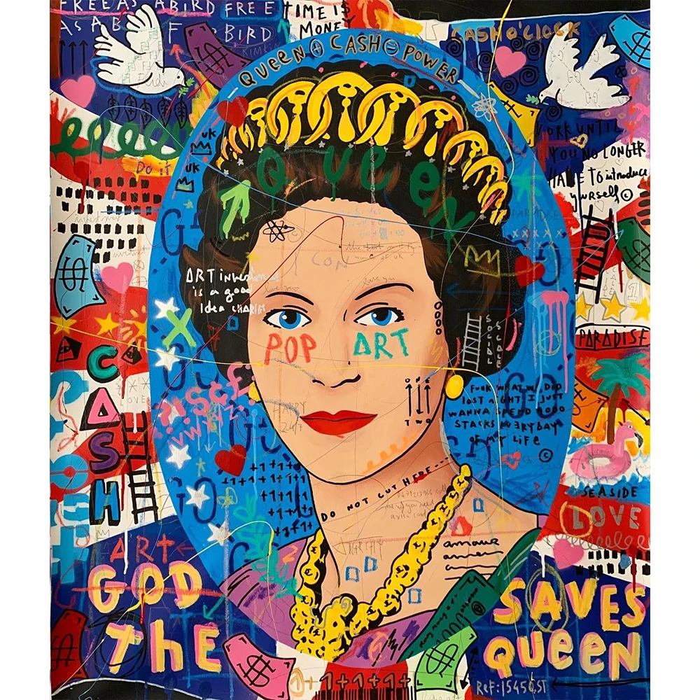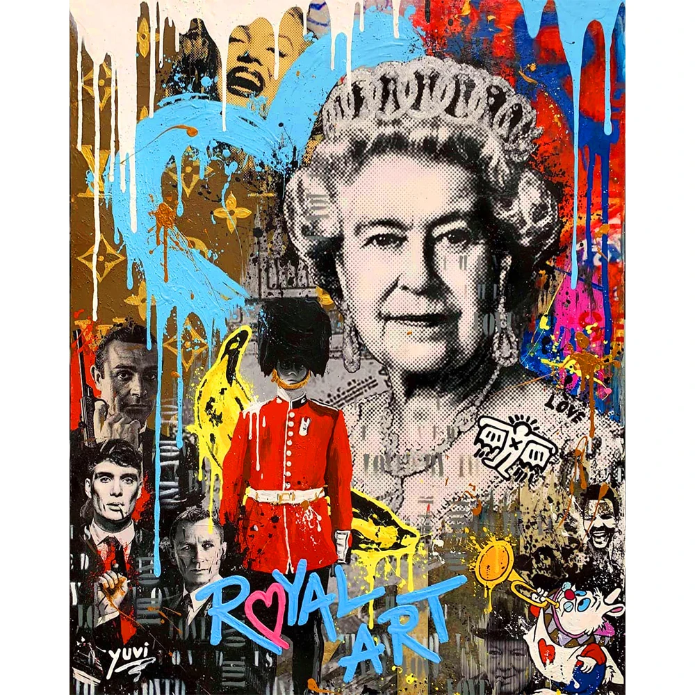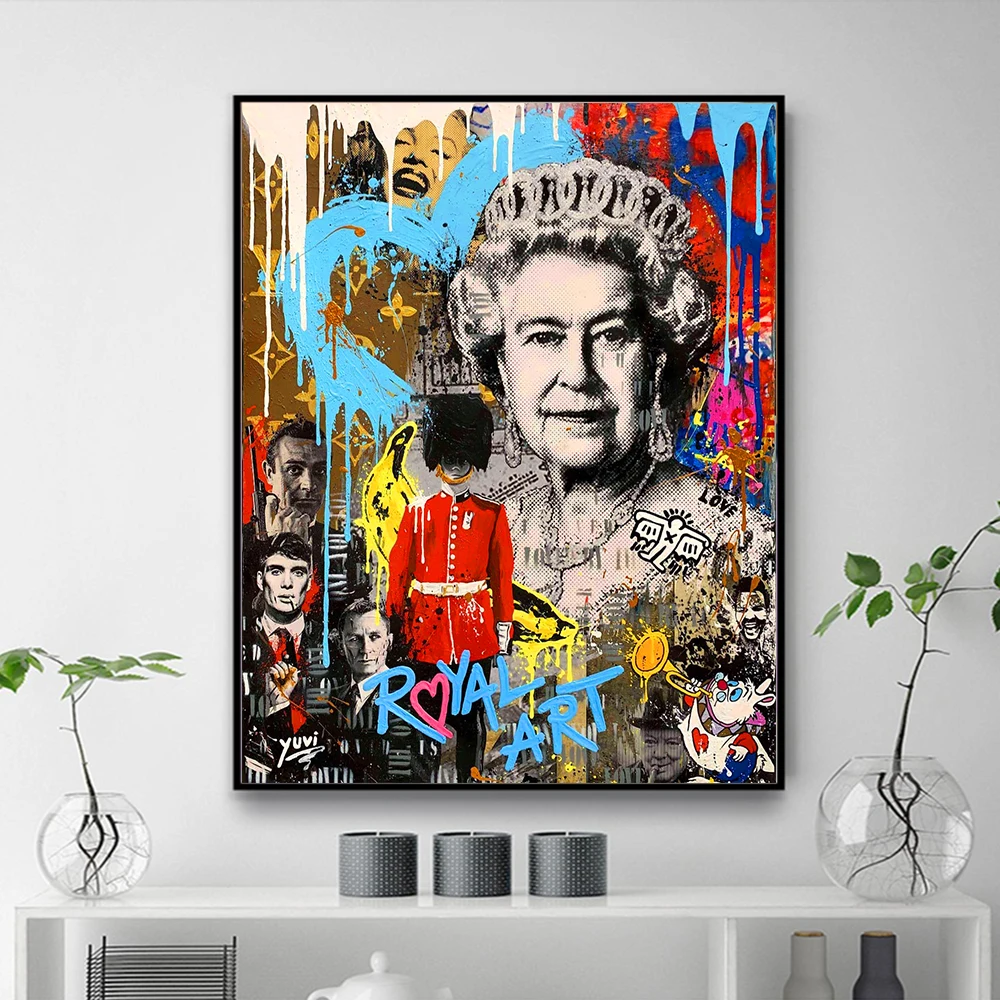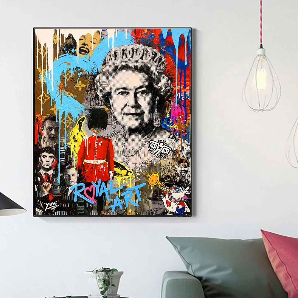 Граффити поп-арт Великобритания британская королева Холст Живопись Красочные постеры и принты Куадрос настенные картины гостиная Hom Декор