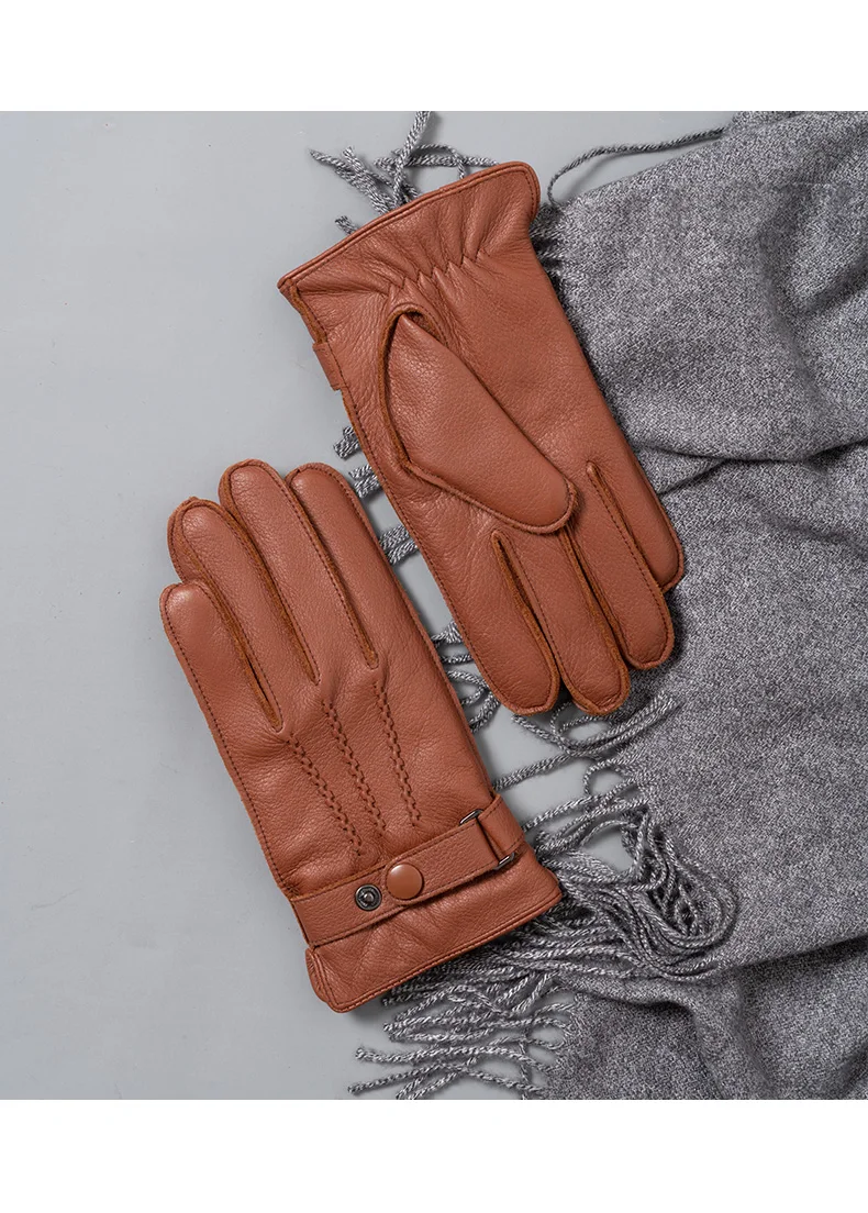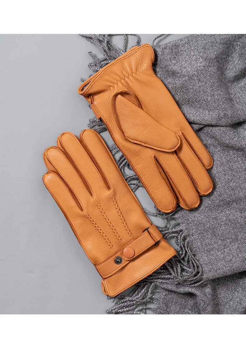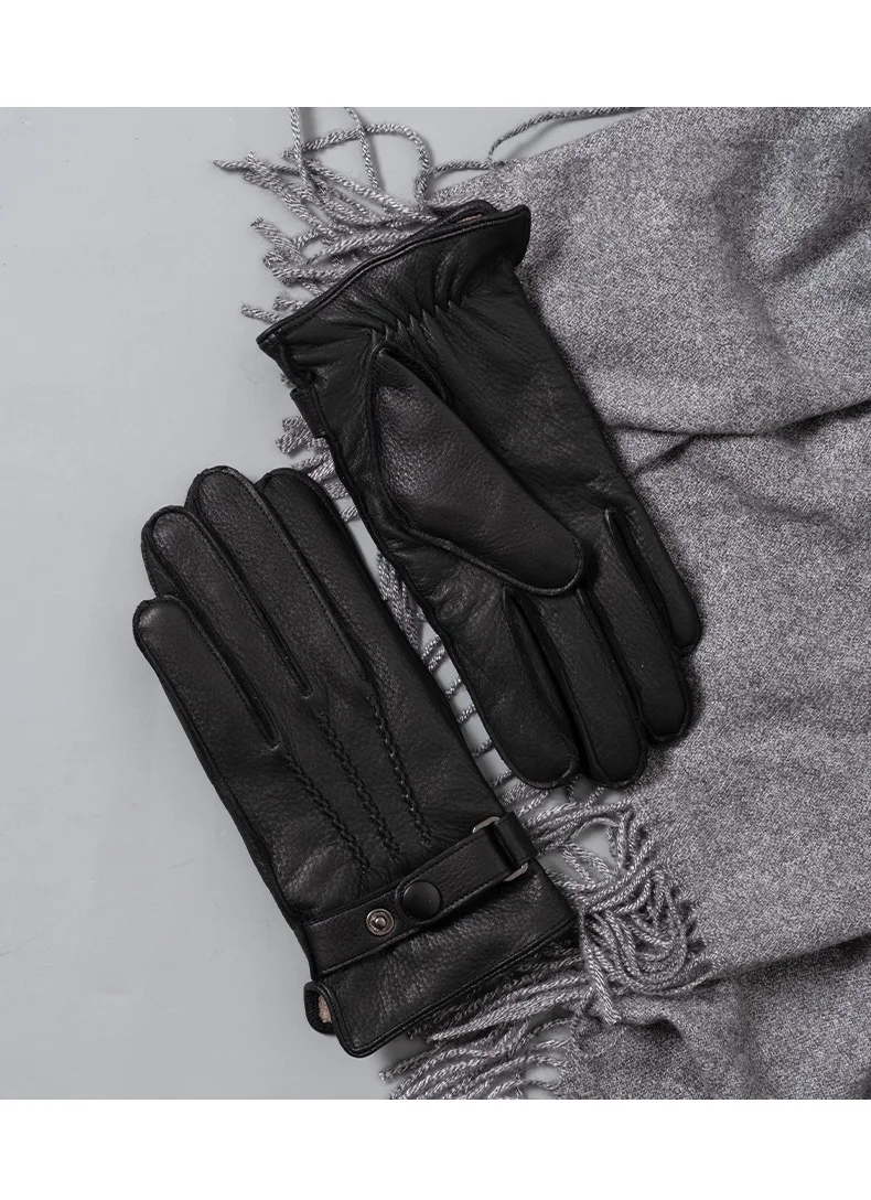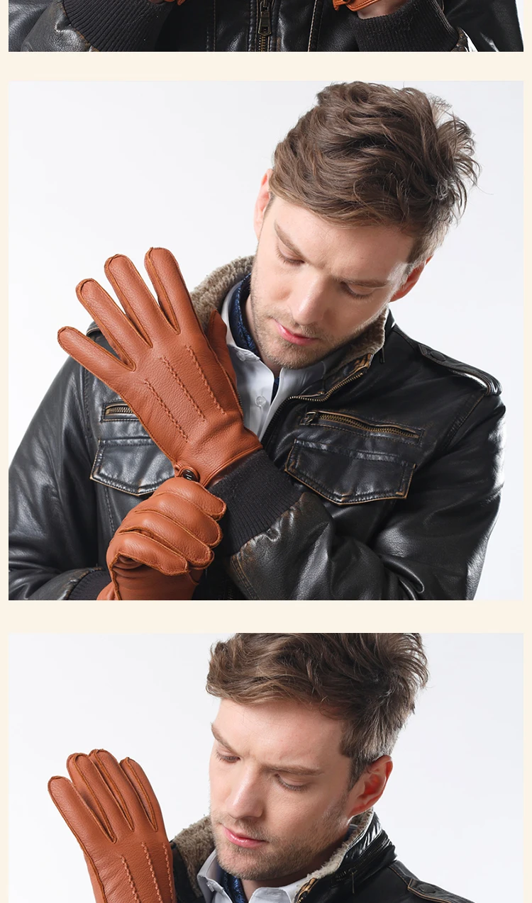 2021 новые модные роскошные мужские перчатки из оленьей кожи с пуговицами на запястье, однотонные мужские Зимние перчатки для вождения из натуральной кожи, Бесплатная доставка