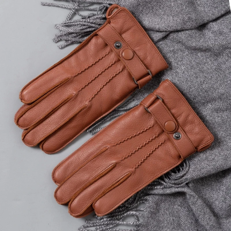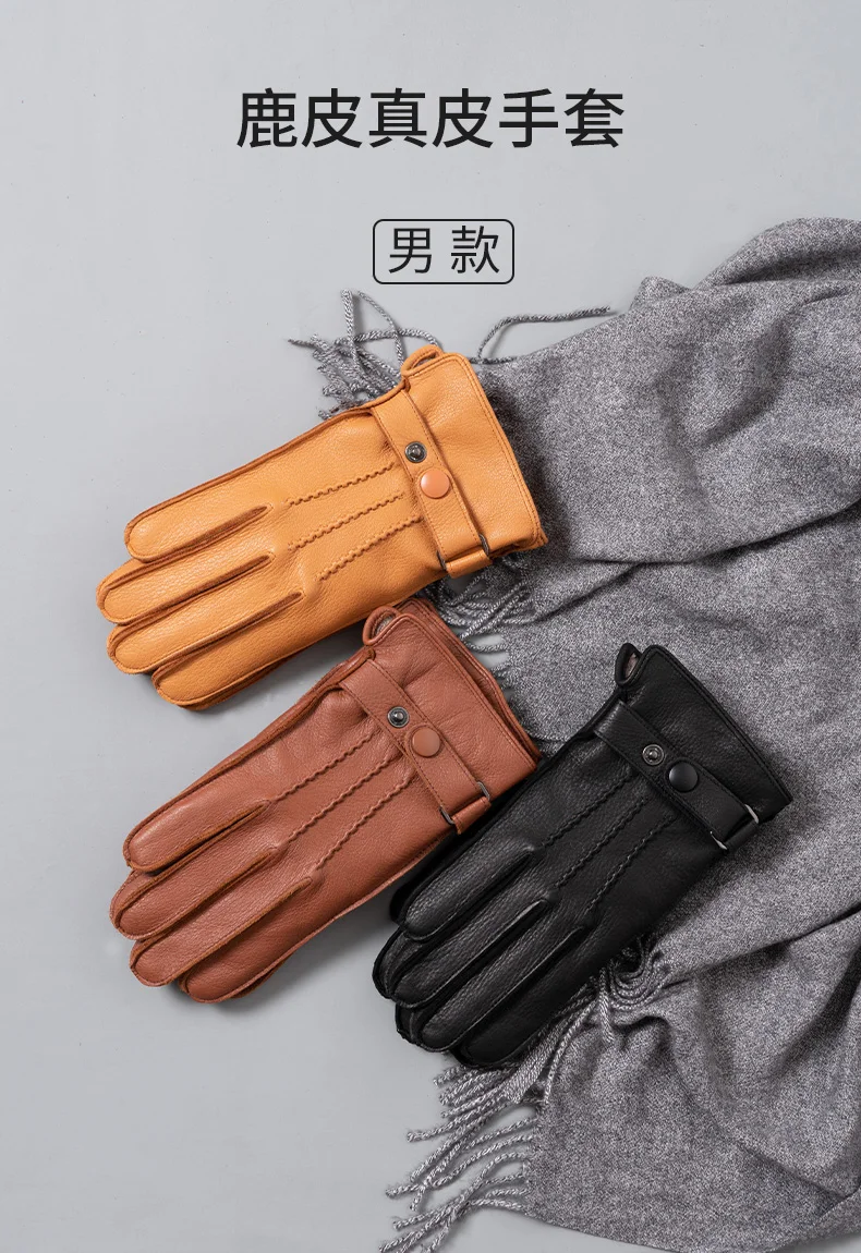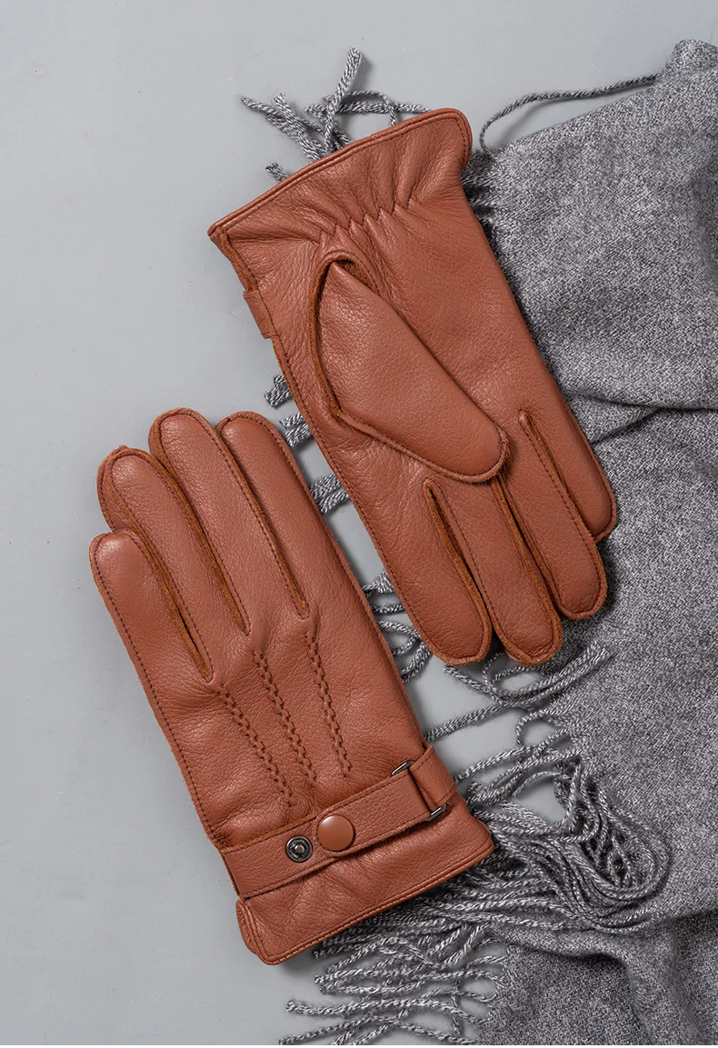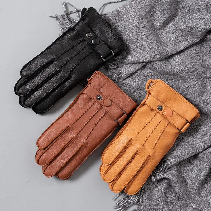 Мужские перчатки из оленьей кожи, однотонные перчатки из натуральной кожи на пуговицах, для вождения, для зимы, 2021