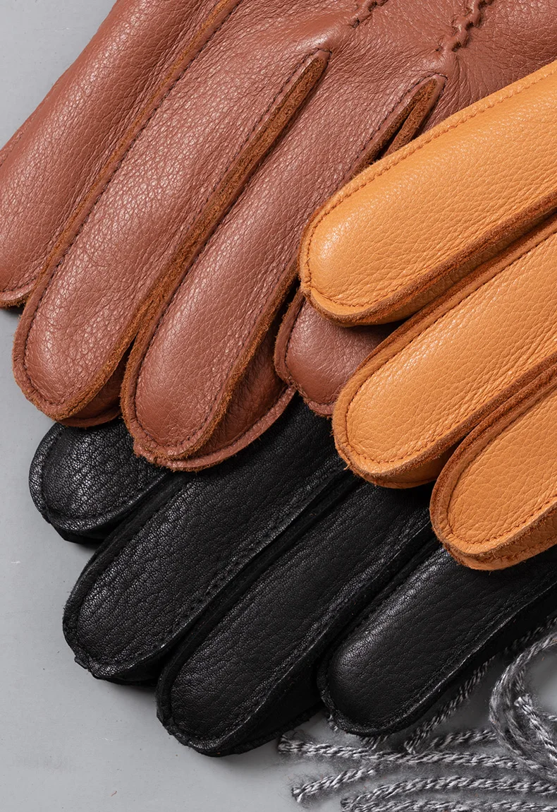 Перчатки мужские из оленьей кожи, Осенние, однотонные, без подкладк...