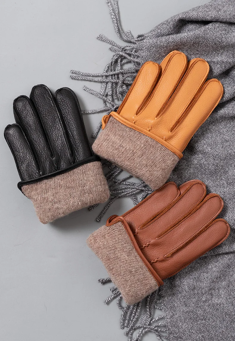 Перчатки мужские из оленьей кожи, трикотажные + кожаные дышащие, дл...