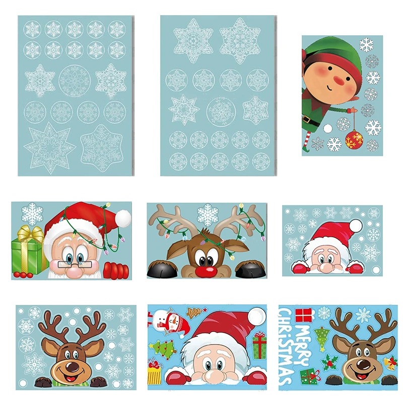 1 лист рождественские наклейки на окна снежинки Зимняя Страна Чудес Санта Клаус электростатические клепки DIY Декор для дома Рождество