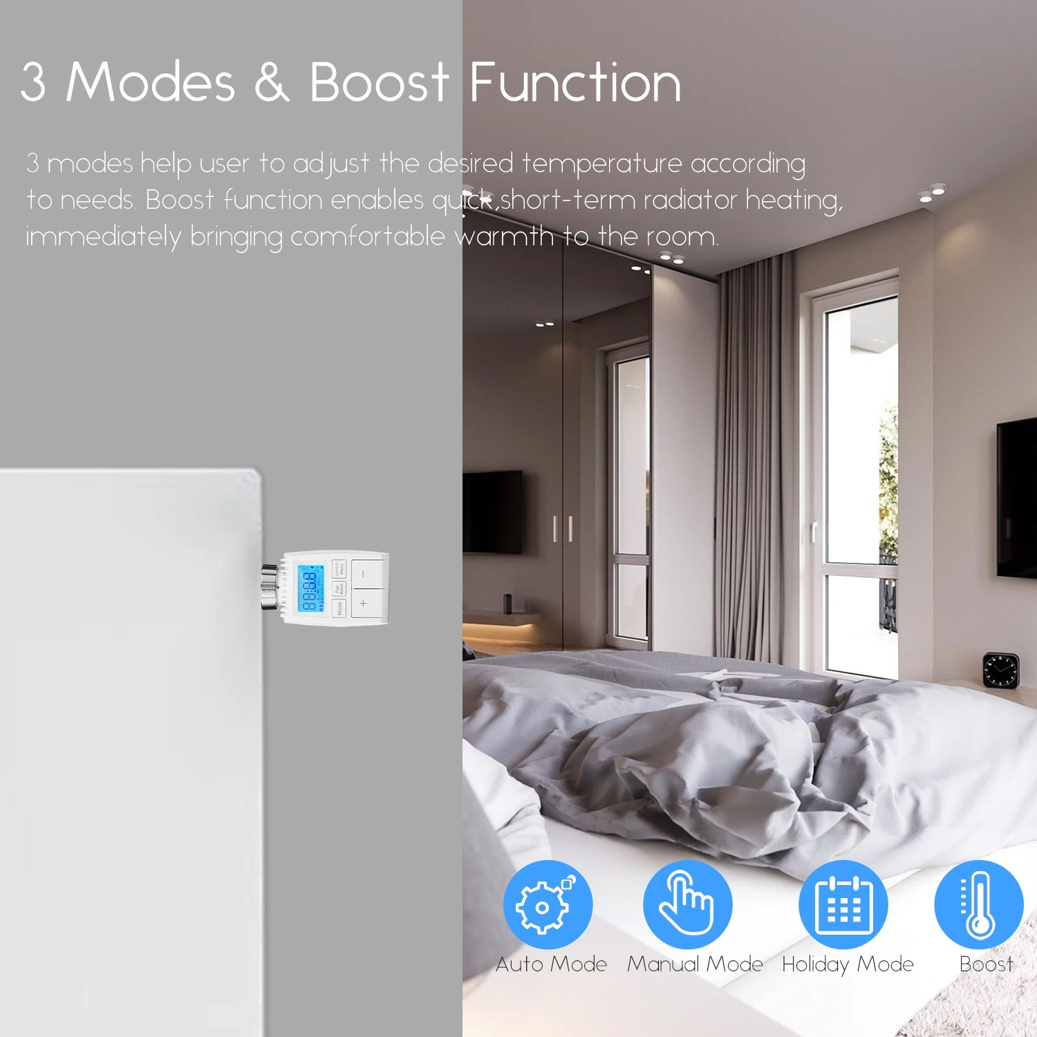 Термостатический радиатор ZigBee-это энергосберегающий термостат для нагревательного радиатора, который совместим с беспроводным стандартом ZigBee. Шлюз Tuya ZigBee является обязательным для использования этого термостата радиатора ZibBee. Это будет ваш лучший выбор контроля температуры для умного дома.Особенности:[Термостатический радиатор ZigBee]Специальный клапан, использующий вместе с нагревательным радиатором, удобно регулировать температуру в помещении с термостатом радиатора ZigBee. Шлюз Tuya ZigBee является обязательным для использования этого термостата радиатора ZibBee.[Управление приложением и Голосовое управление]Он может управляться через Smart Life или Tuya Smart APP с помощью вашего смартфона, прежде чем вы вернетесь домой. Голосовое управление без рук, совместимо с Alexa и Google Home.[3 режима и функция Boost]Автоматический/ручной/праздничный режим для вас на выбор, помогая вам удобно регулировать желаемую температуру в зависимости от различных ситуаций. Функция Boost обеспечивает быстрое, кратковременное нагревание радиатора, сразу же обеспечивая комфортное тепло в комнате.[Еженедельный программируемый и детский замок]Вы можете выбрать один день недели, все недели, выходные дни или всю неделю для еженедельного программирования, чтобы удовлетворить различные требования. И с функцией блокировки ребенка, чтобы дети не могли работать по ошибке.[Простая установка и энергосбережение]Поставляется с богатыми установочными аксессуарами, подходит для большего количества радиаторов и легко монтируется без необходимости слива воды или вмешательства в систему отопления. Более энергосберегающий, просто Замените старый обычный клапан радиатора.[Открытое окно и защита от замерзания]Устройство автоматически останавливает нагрев, когда обнаруживает внезапное падение температуры (5 ℃ в течение 5 минут по умолчанию); Это обычно вызвано открытым окном или дверью. В ручном режиме, когда температура вручную регулируется до менее 5 ℃, функция анти-замораживания будет запущена до тех пор, пока температура не повысится до 8 ℃.Примечание:1. Используйте только устройство в помещении и избегайте воздействия влаги, пыли и солнечного света или внешнего теплового излучения.2. Внимательно прочитайте руководство пользователя для использования продукта. Не позволяйте детям играть с ним.3. Допускается погрешность в 1-3 мм из-за ручного измерения.4. Из-за светильник и изображения на мониторе настроек монитора, возможна небольшая разница в цвете из-быть s светильник ly по-разному. Спасибо за понимание.Характеристики:Тип: тип 1 (термостат ZigBee)/Тип 2 (шлюз Zigbee) -- (опционально)Цвет: белыйМатериал корпуса: пластикЗагрузка приложения: Совместимость с Smart Life/ Tuya SmartИсточник питания: 2 * AA батареи (не входят в комплект)Диапазон температур: 5 ℃-30 ℃, шаг 0,5 ℃Температура по умолчанию: 17 ℃ и 21 ℃Установка: M30 x 1,5/RAVL клапан/RAV клапан/RA клапанРабочая температура: -10 ℃ ~ 40 ℃Размер изделия: 55*55*98 мм/2,17*2,17 * 3.86inВес изделия: 141 г/4,97 унцийПосылка Размеры: 17,7*6*6 см/6,97*2,36 * 2.36inВес посылка: 186 г/6,54 унцийПосылка:1 * Термостатический радиатор ZigBee1 * Набор аксессуаров для установки1 * Руководство пользователя (на английском языке)