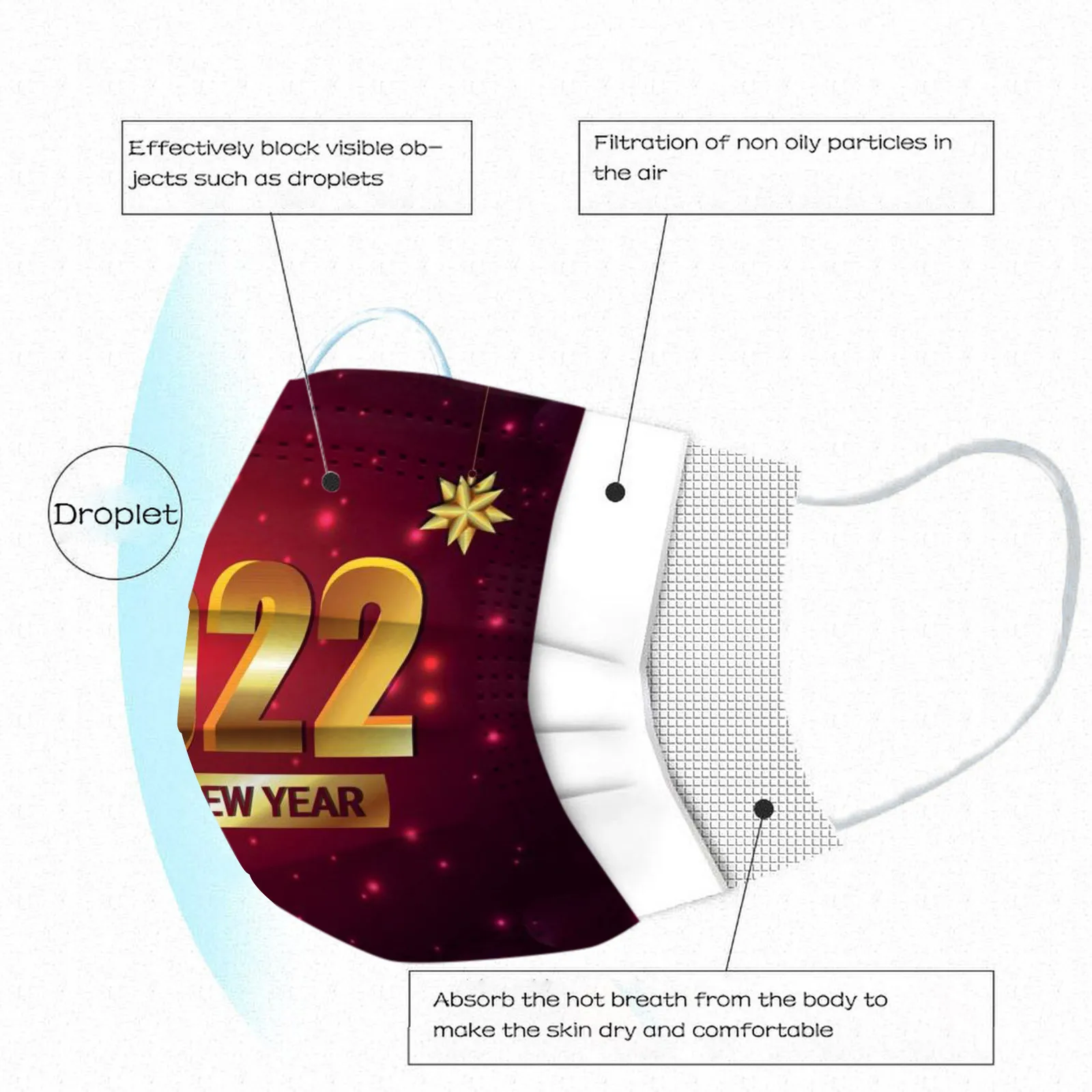 Персонажи50PC Adult New Year Printed Disposable Mask