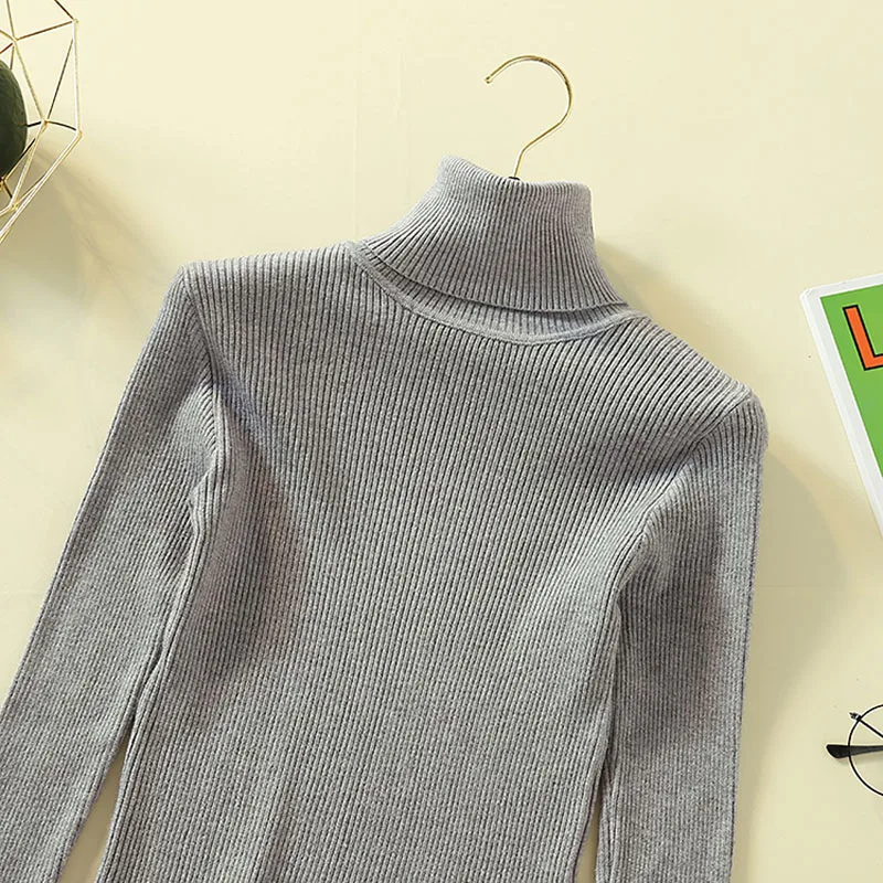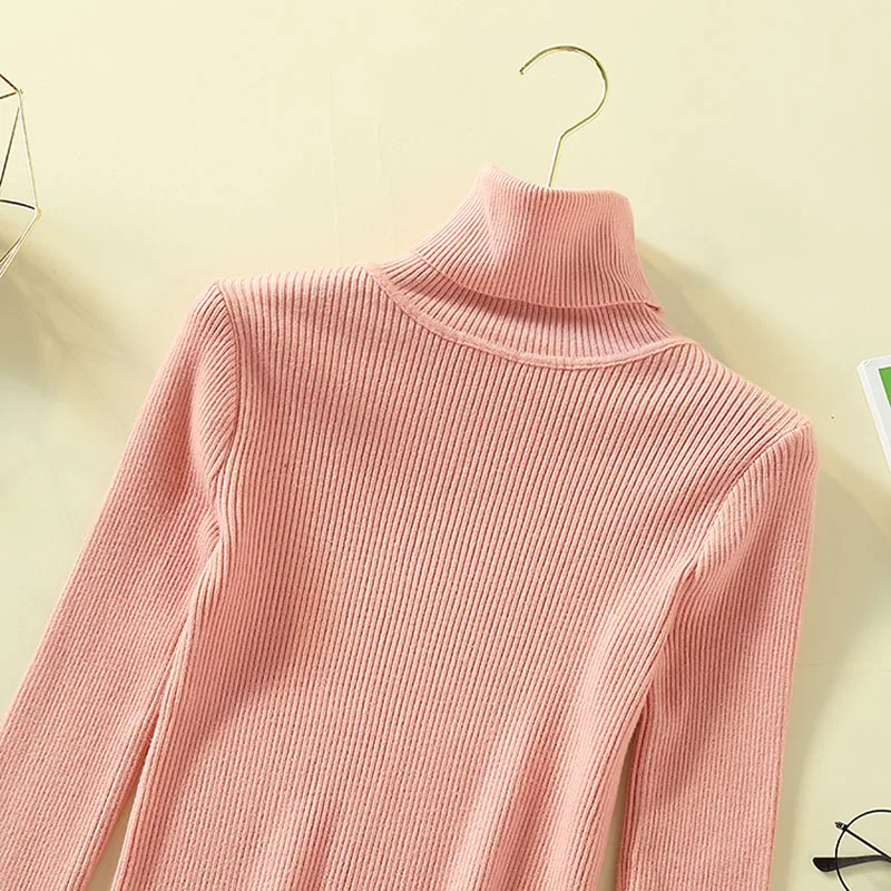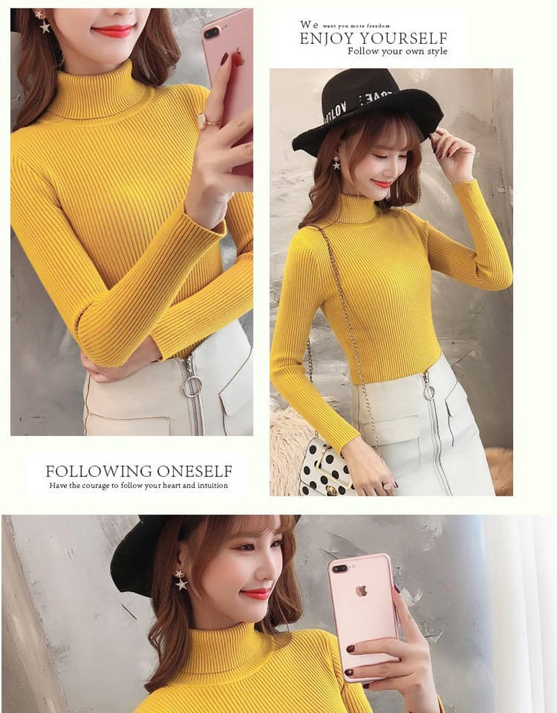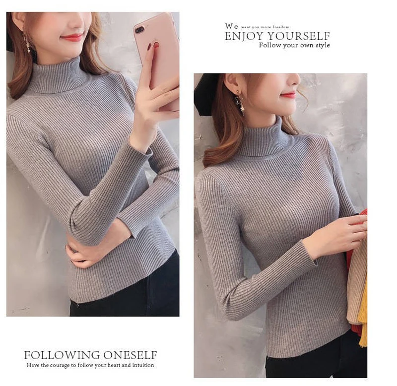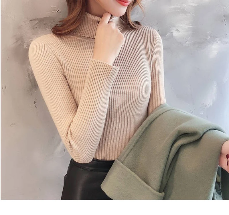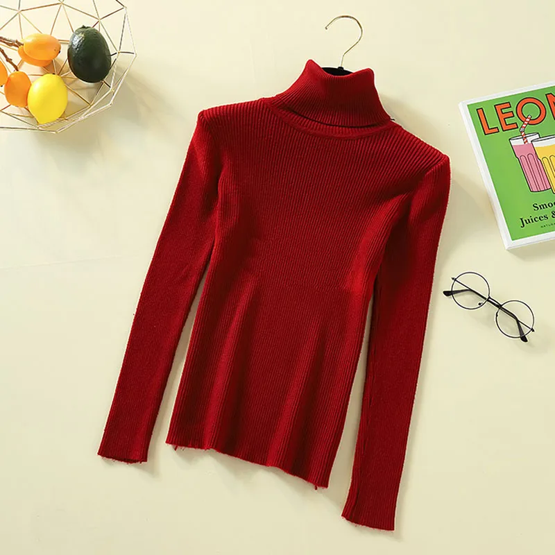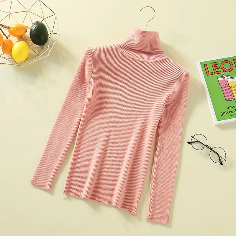 Женский пуловер с высоким воротником, весенний джемпер, вязаный базовый топ, модная Осенняя Корейская женская одежда с длинным рукавом, 2021