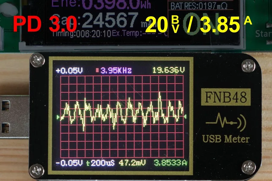 В подгорье 12 дней. Немного Протестировано с тестером fnirsi fnb48 и нагрузкой atorch dl24 150 Вт. Результаты испытаний. ● 1. Максимальная мощность: A. USB Type A, режим: -5 В/3 {3,4} A; 9 В/2 {2,3} A; 12 В/1,6 {1,7} A; диапазон 4-12 В с шагом 0,2 В, ток как на Qc2; b • USB Тип 1 - 5 В/2,9 {3,35} A; 9 В/2,9 {3,35} A; 12 В/2,8 {3,35} A; 15 В/3,0 {3,35} A; 20 в/3,6 {3,95} A; 21/2 7 {3,35} A (фактически 3,8-20 в; Шаг изменения напряжения: 20, 100, 1000 мВ). ● 2. Нестабильное напряжение:-не более ± 30 мВ. ● 3. Температура: при мощности (в час): 60 Вт-64 и Дэг; С, 77 Вт-около 75 и Дэг; С. • 4 звука: не идентифицированы. ● 5 ● вес 127 гр. ● 6. В целом: отличный универсальный источник питания с небольшими размерами и весом. Максимальная мощность выше заявленной (72 Вт гарантировано, с плавным увеличением до 77 Вт). ● Ps● источник питания дает больше энергии, если мощность нагрузки увеличивается плавно. В скобках {x} указан ток с плавным увеличением нагрузки.