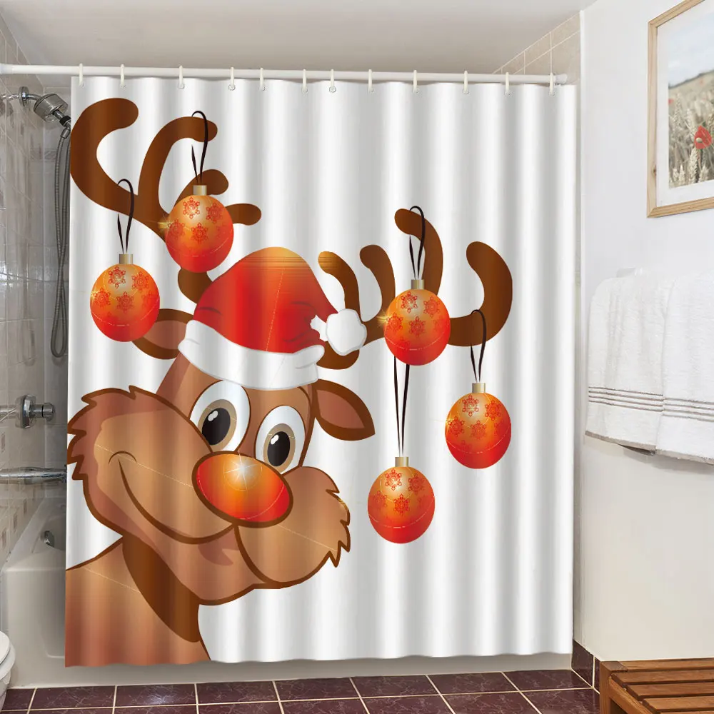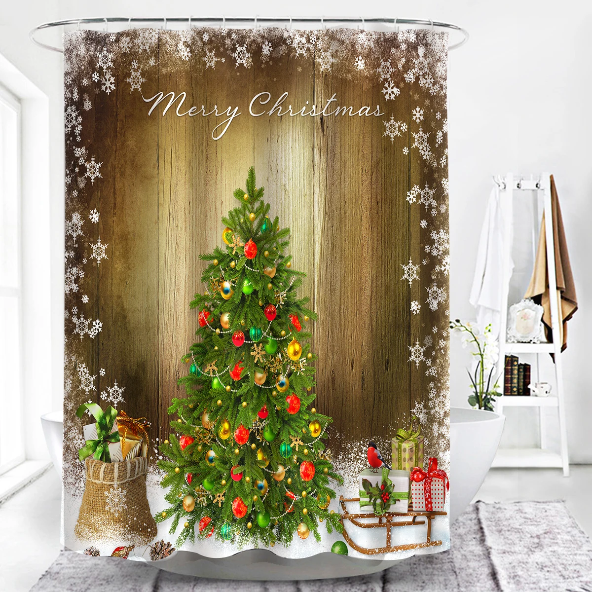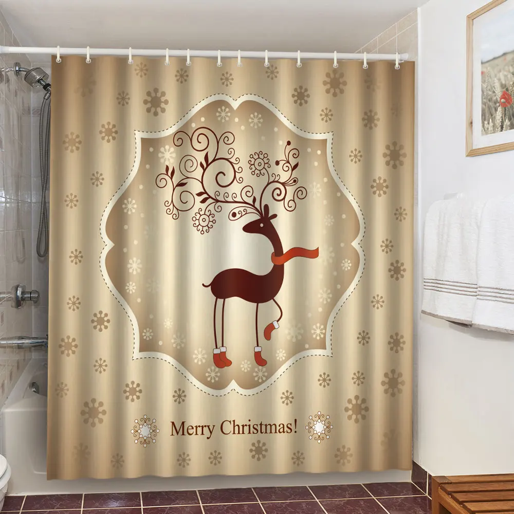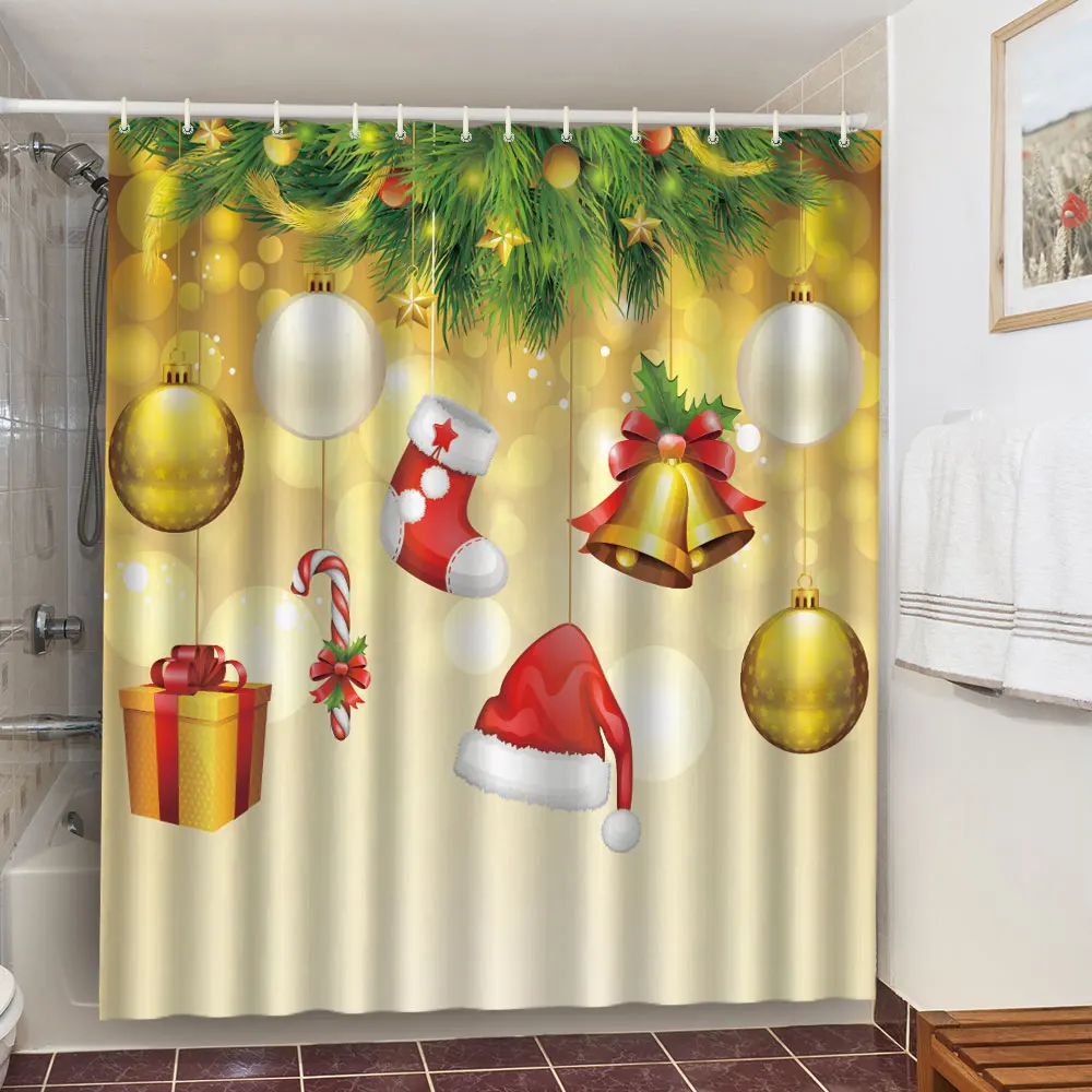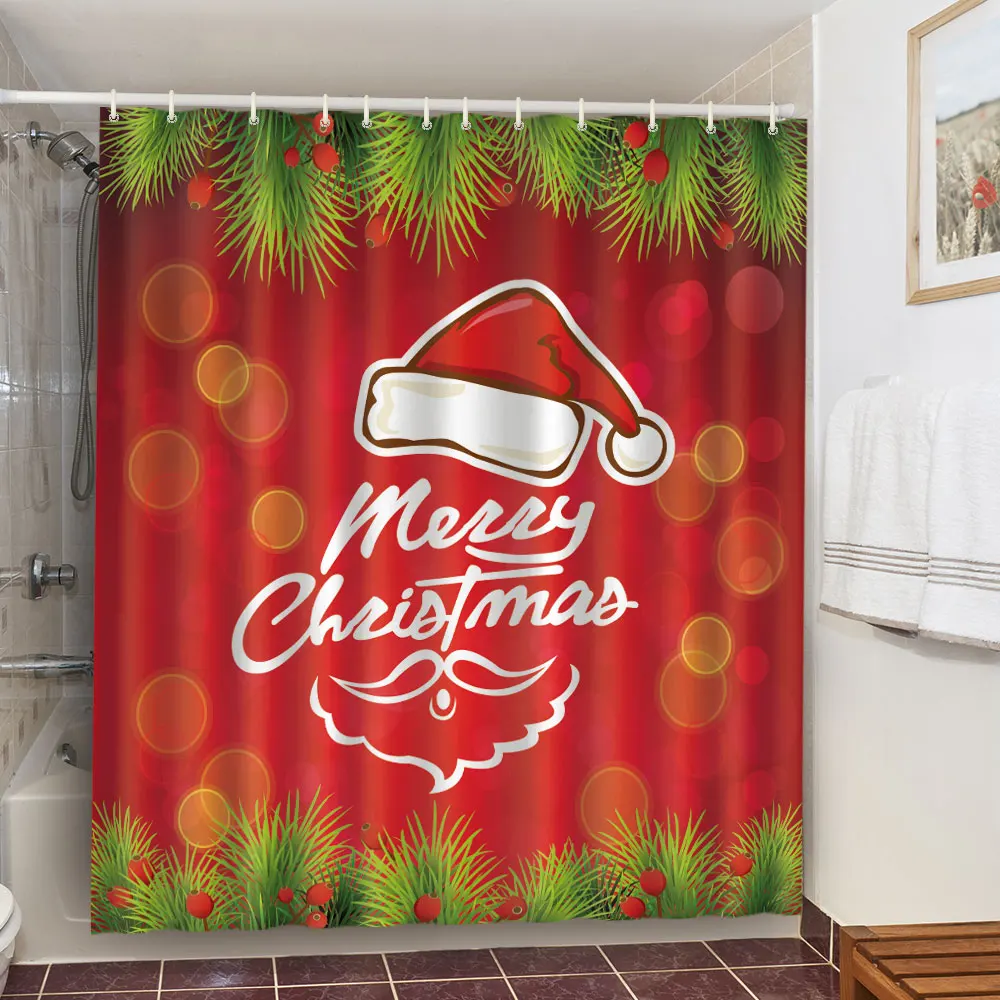 Рождественское украшение, занавеска для душа в ванной комнате из полиэстера, экологически чистые водонепроницаемые занавески для ванны, моющийся Декор Санта-Клауса