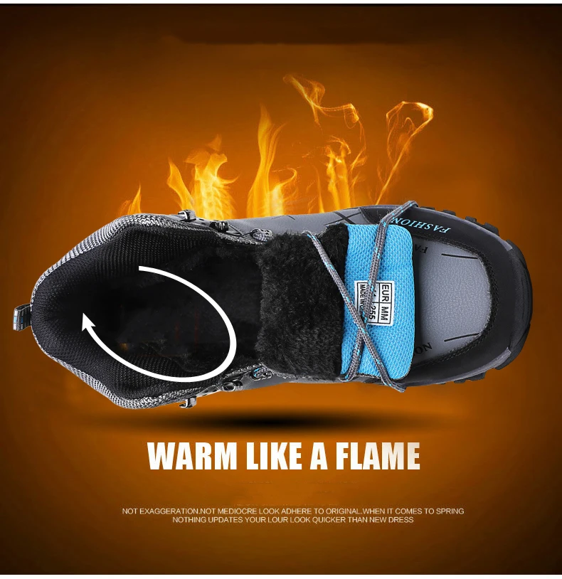 Теплые мужские ботинки, водонепроницаемые ботинки из кожзаменителя ...