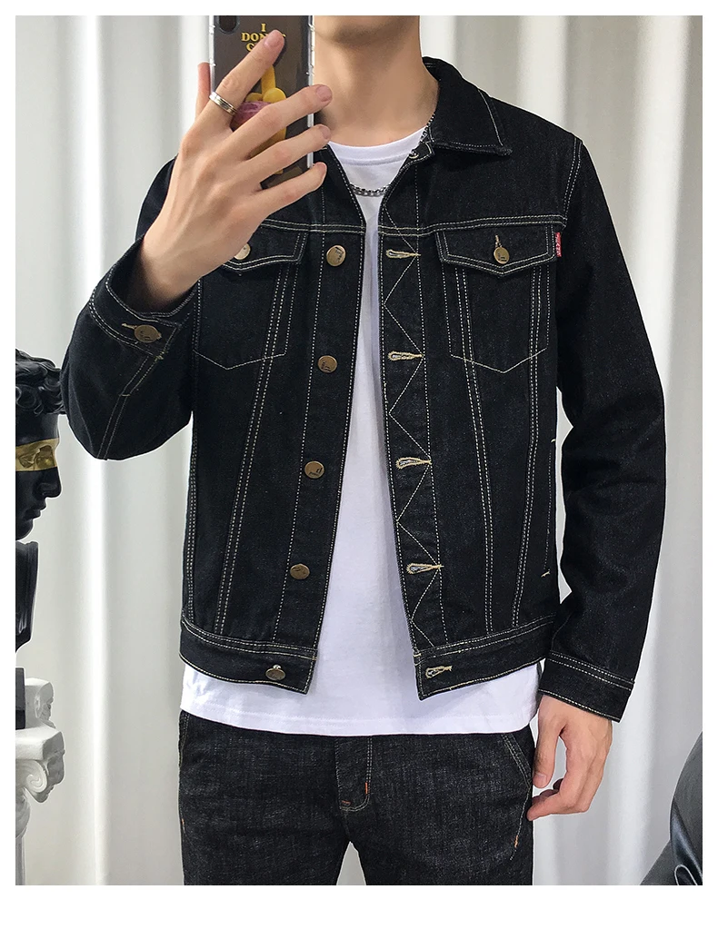 Куртка мужская джинсовая однотонная, Классическая Повседневная хлопковая однобортная, с лацканами, приталенная, синяя, 5XL, на осень