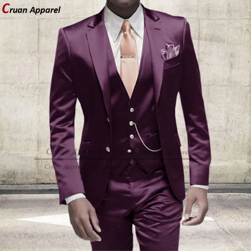 Новый роскошный блестящий атласный армейский зеленый мужской свадебный костюм 3 шт. индивидуальный облегающий смокинг для лучшего Мужчины Классический пиджак жилет брюки комплект