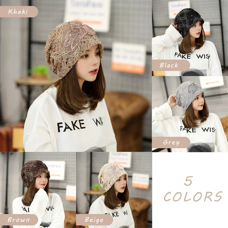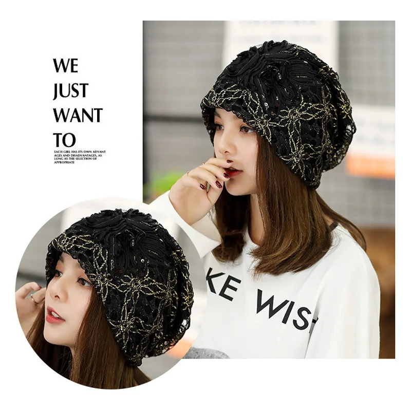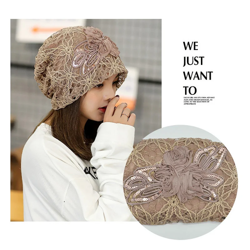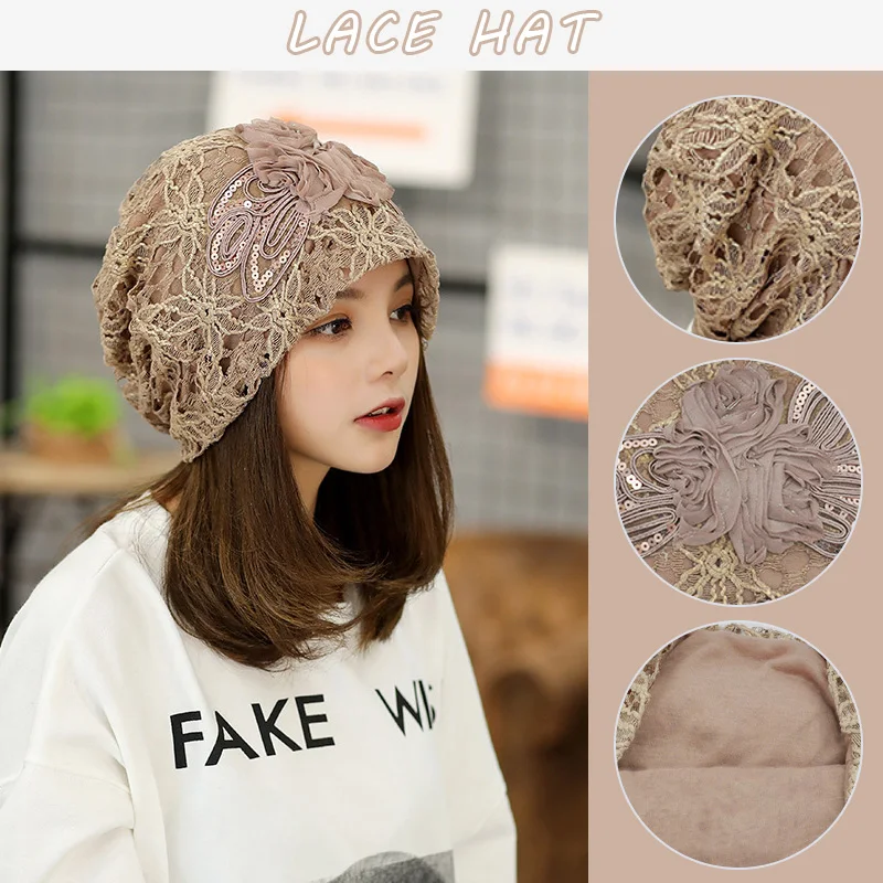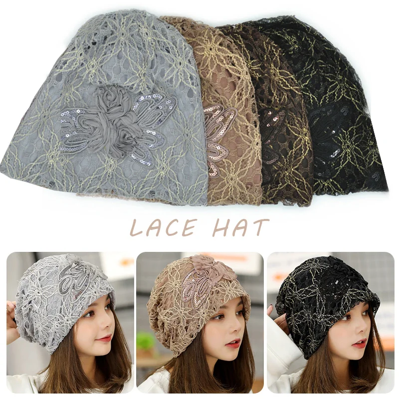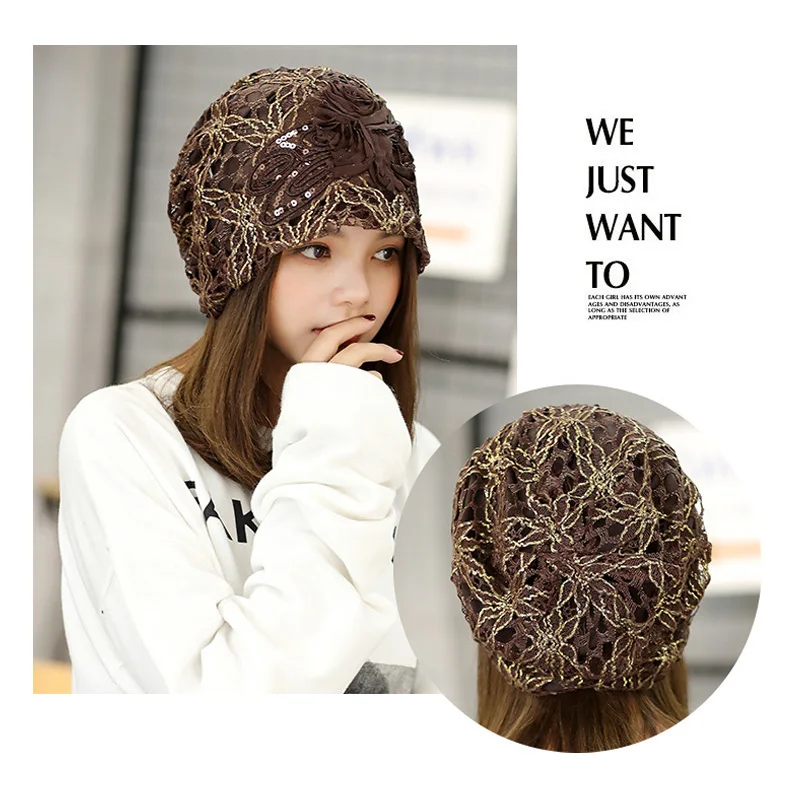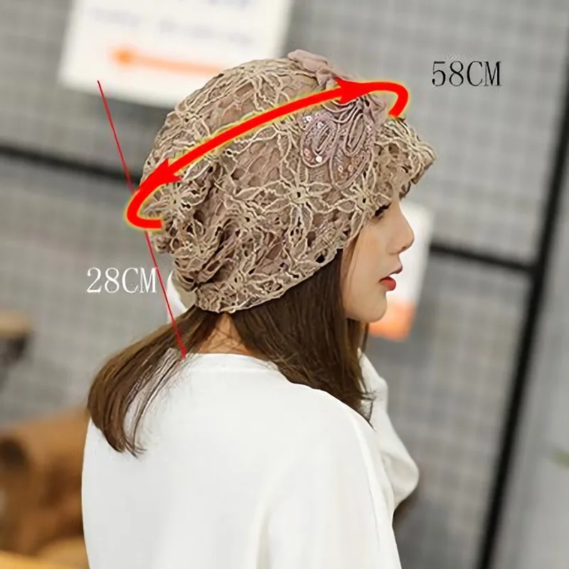 Женский тюрбан, модная женская трикотажная шапка, Солнцезащитная кружевная шляпа с вырезами, головной убор