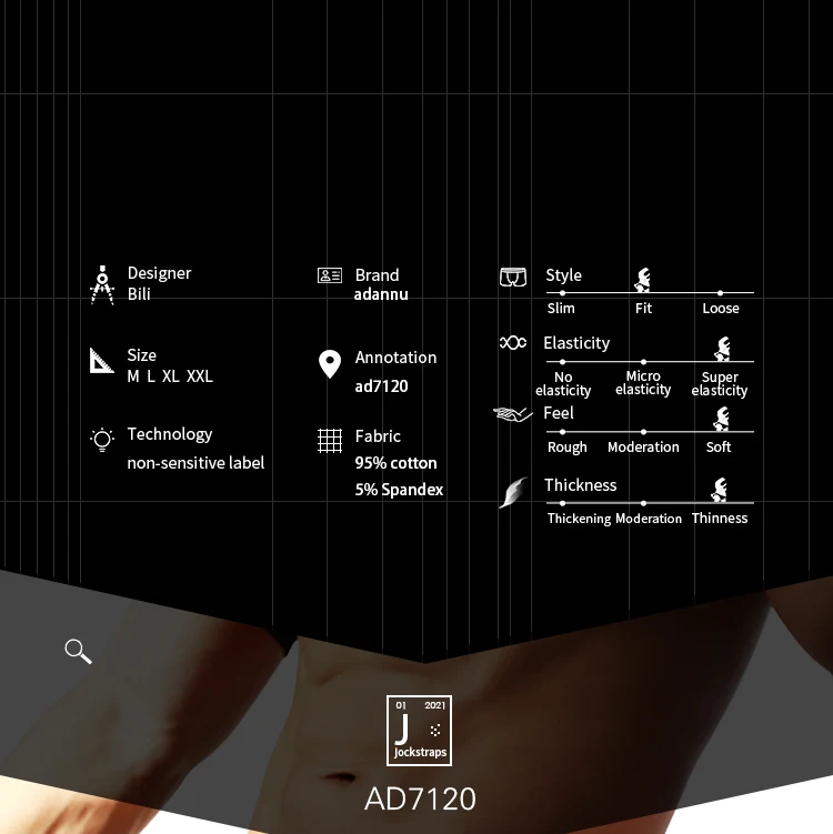 Мужские трусы стринги и G-стринги из быстросохнущего хлопка, AD7120
