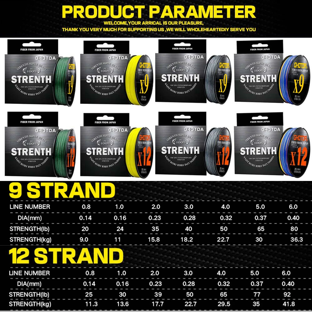 Плетеный шнур для рыбалки GHOTDA, плоский и износостойкий шнур 912 нитей, 500 м, 20-92 анг. Фунт., полуплавающий шнур для пресной и соленой воды